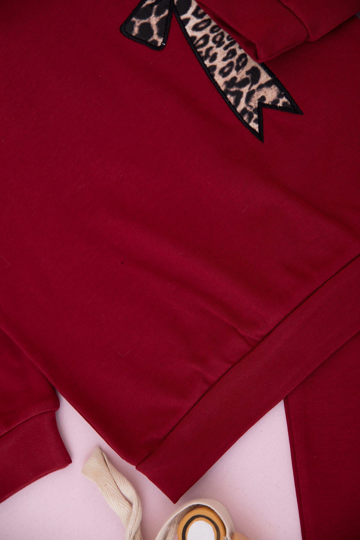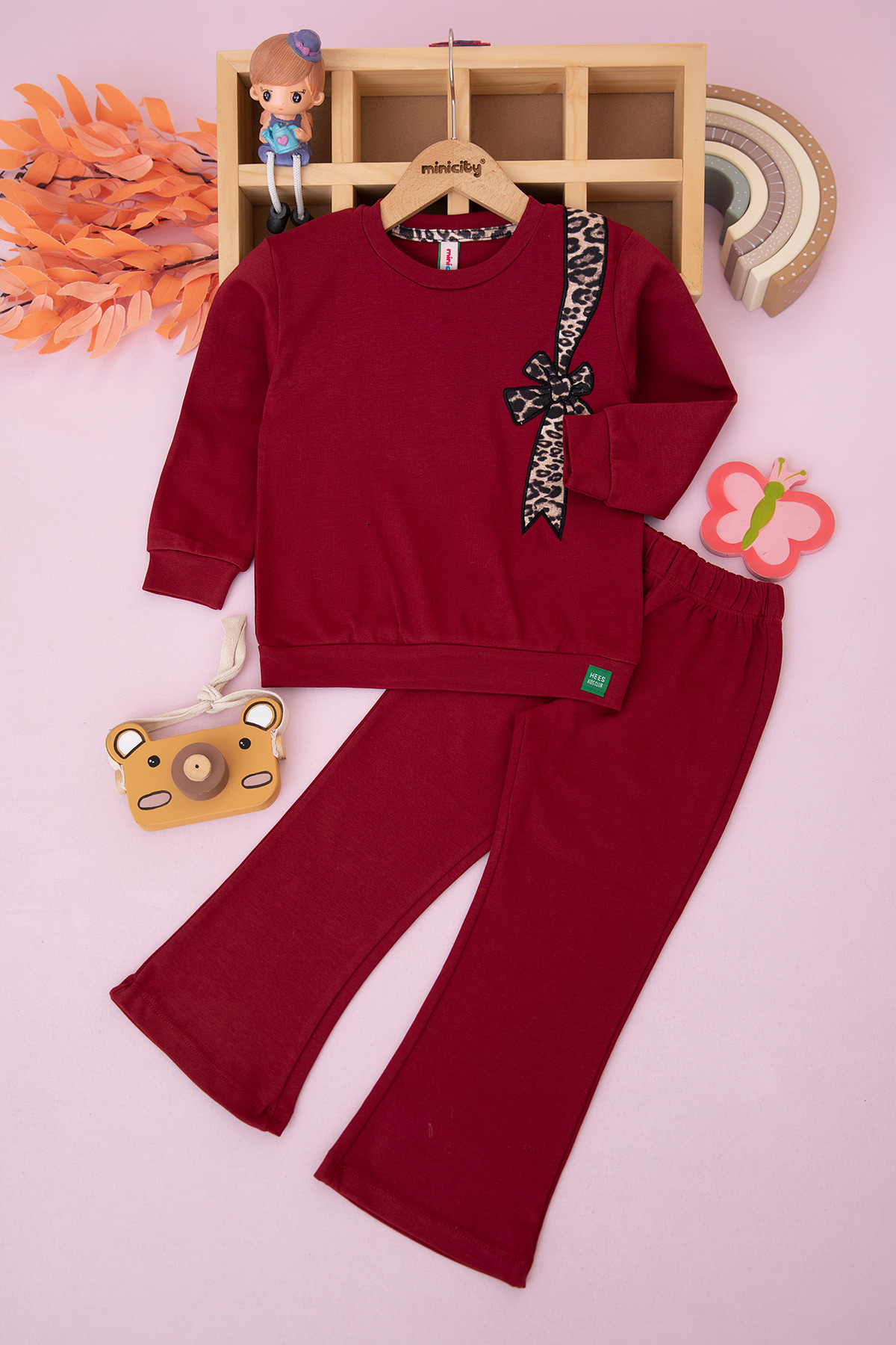 Kız Çocuk Leopar Fiyonk Nakışlı Takım (3-10 Yaş)