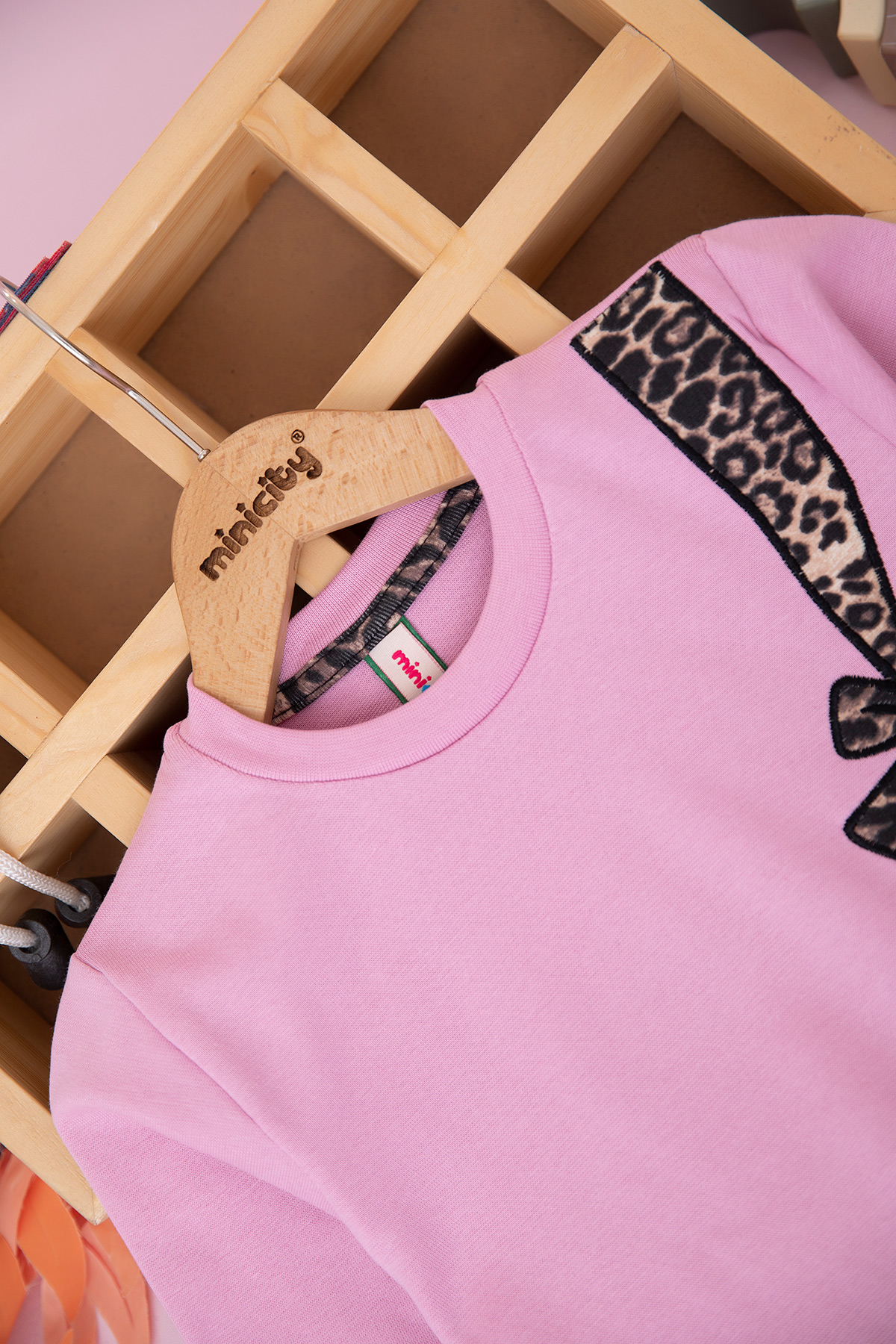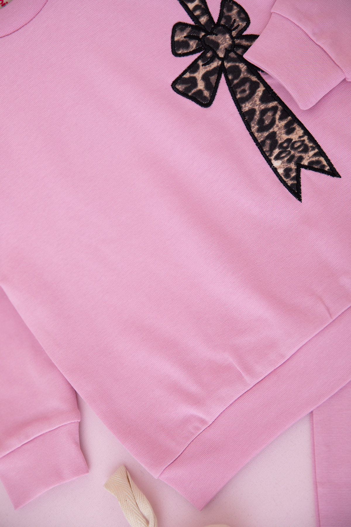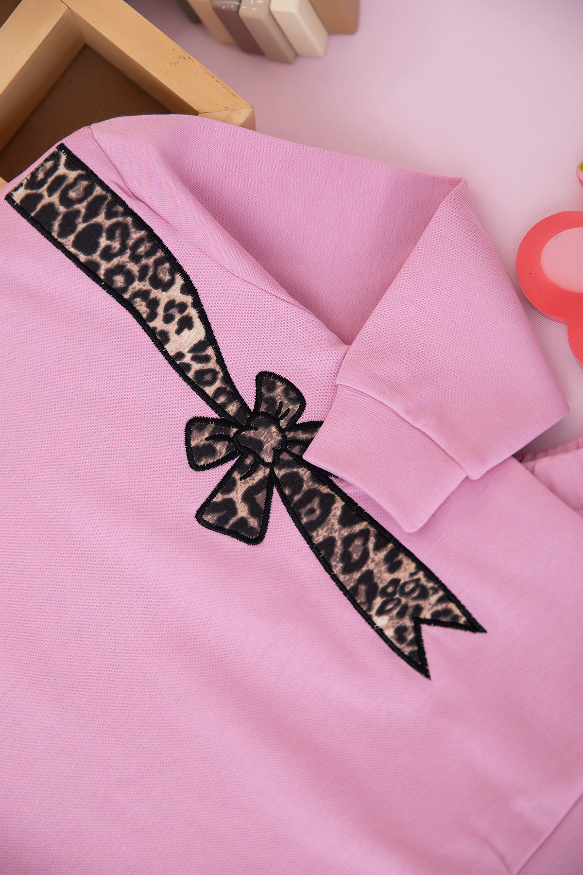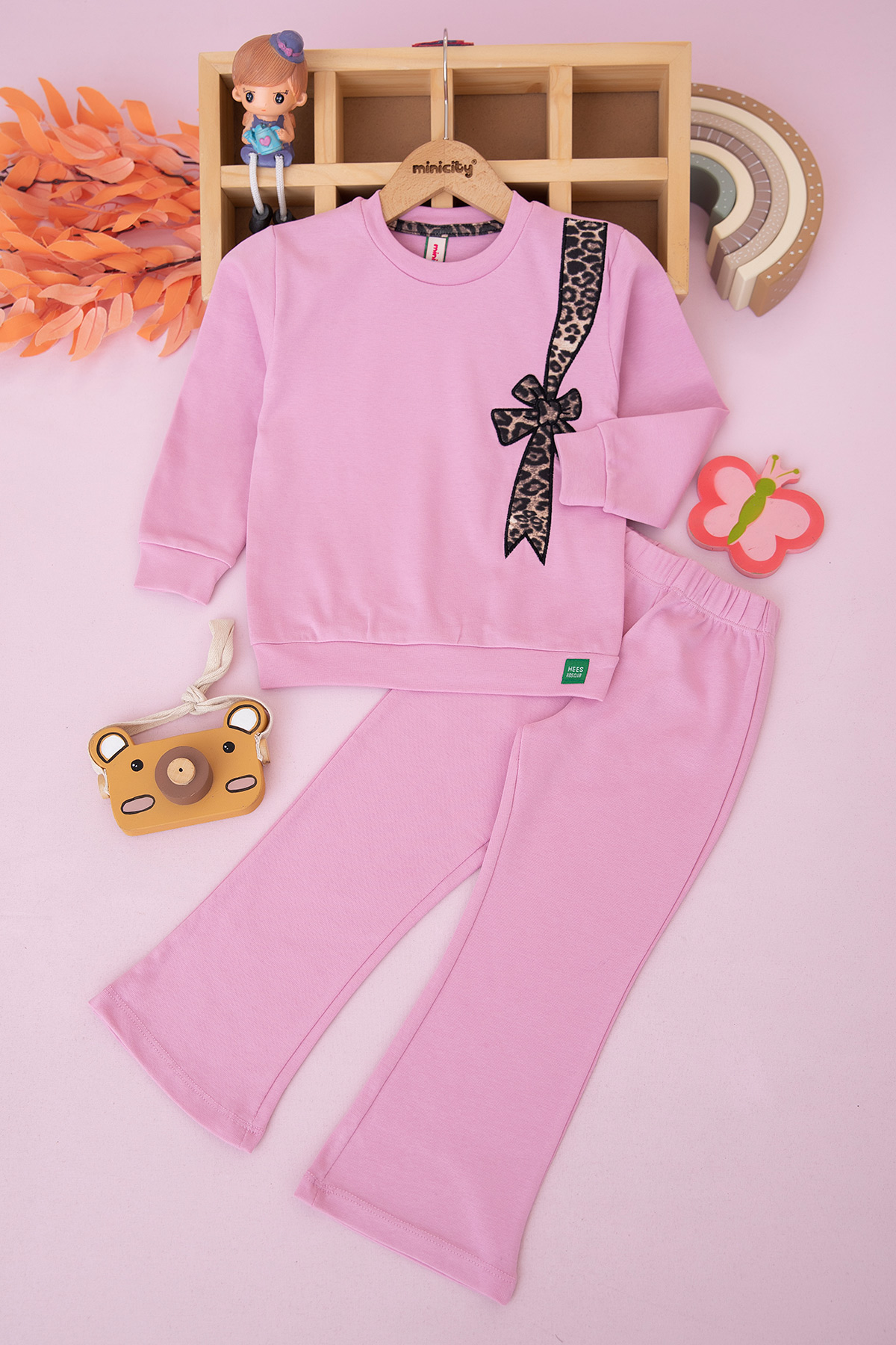 Kız Çocuk Leopar Fiyonk Nakışlı Takım (3-10 Yaş)