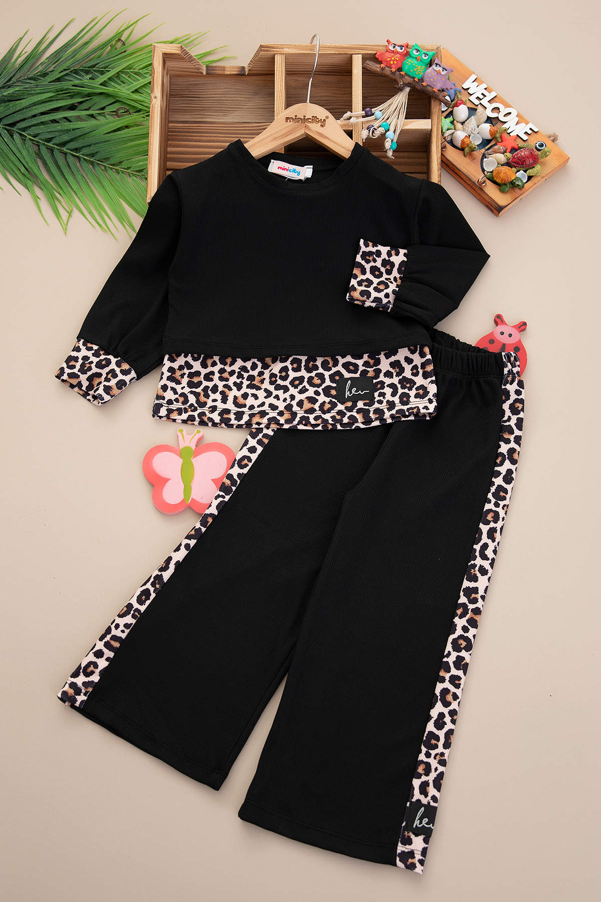 Kız Çocuk Leopar Garnili Takım- 5533 (3-12 Yaş)