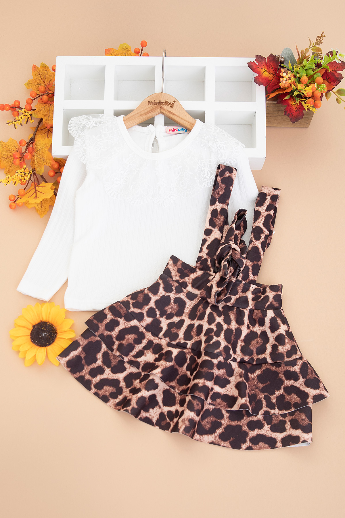 Kız Çocuk Leopar Güpürlü Salopet Takım - 2674 (4-12 Yaş)