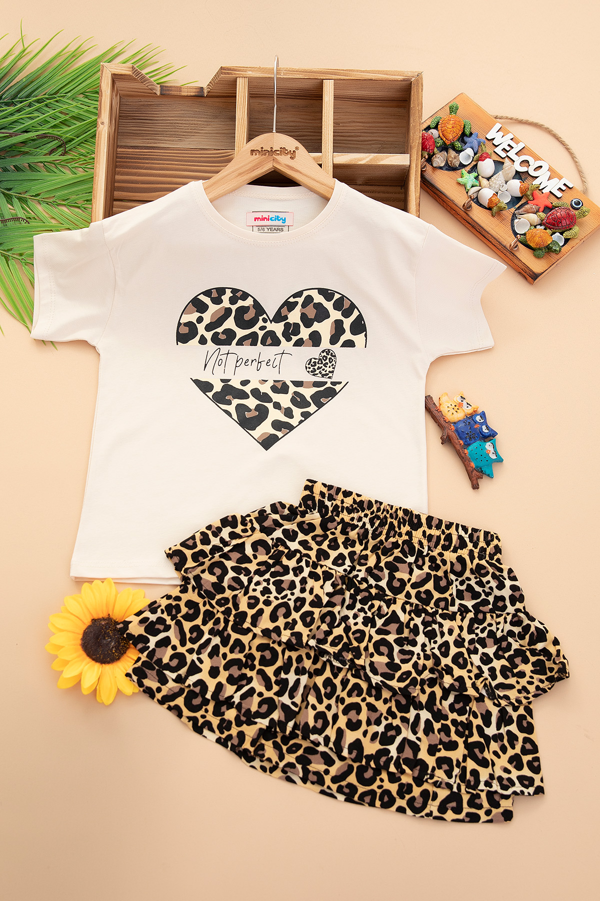 Kız Çocuk Leopar Kalp Etekli Takım - 30755 (5-12 Yaş)