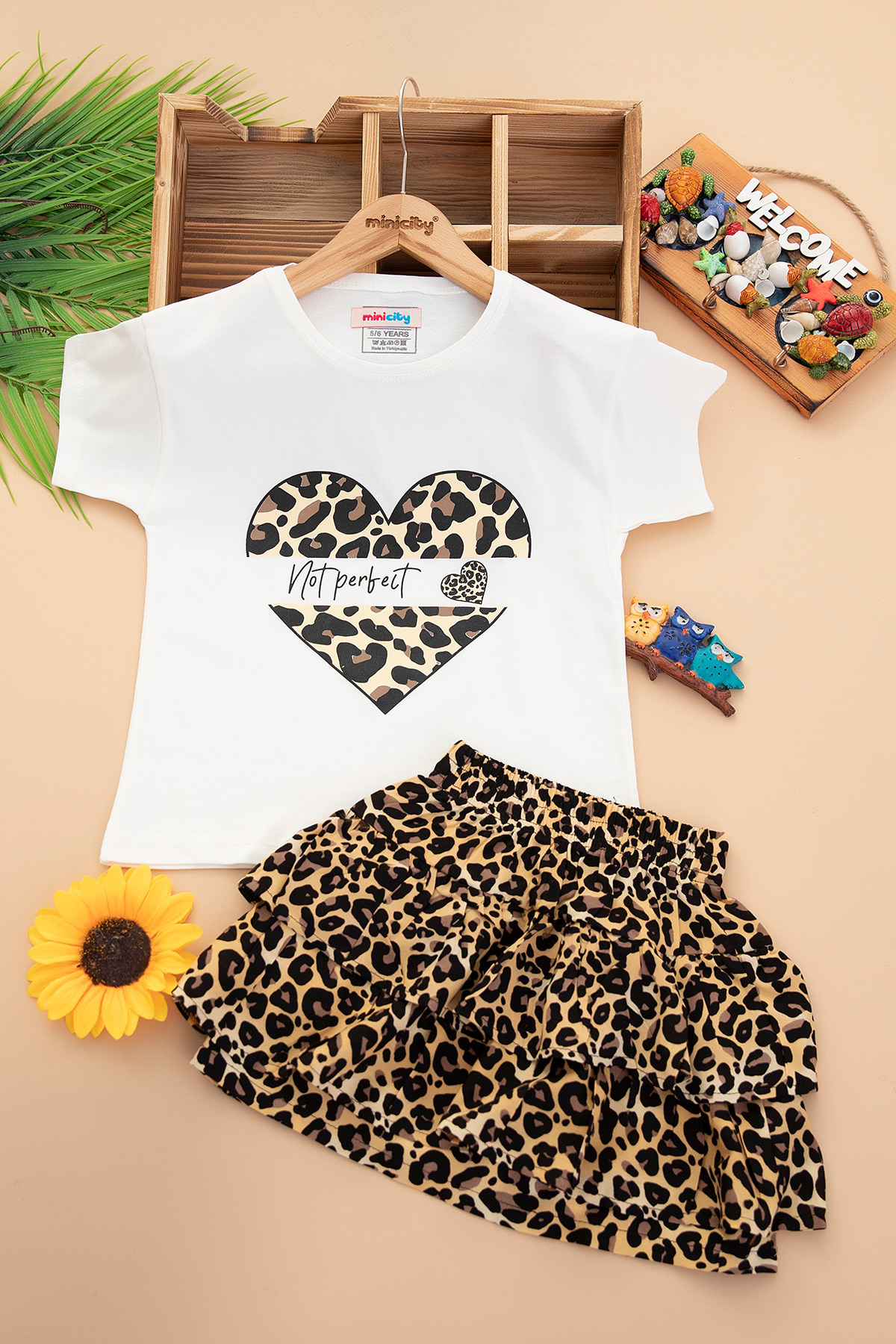 Kız Çocuk Leopar Kalp Etekli Takım - 30755 (5-12 Yaş)