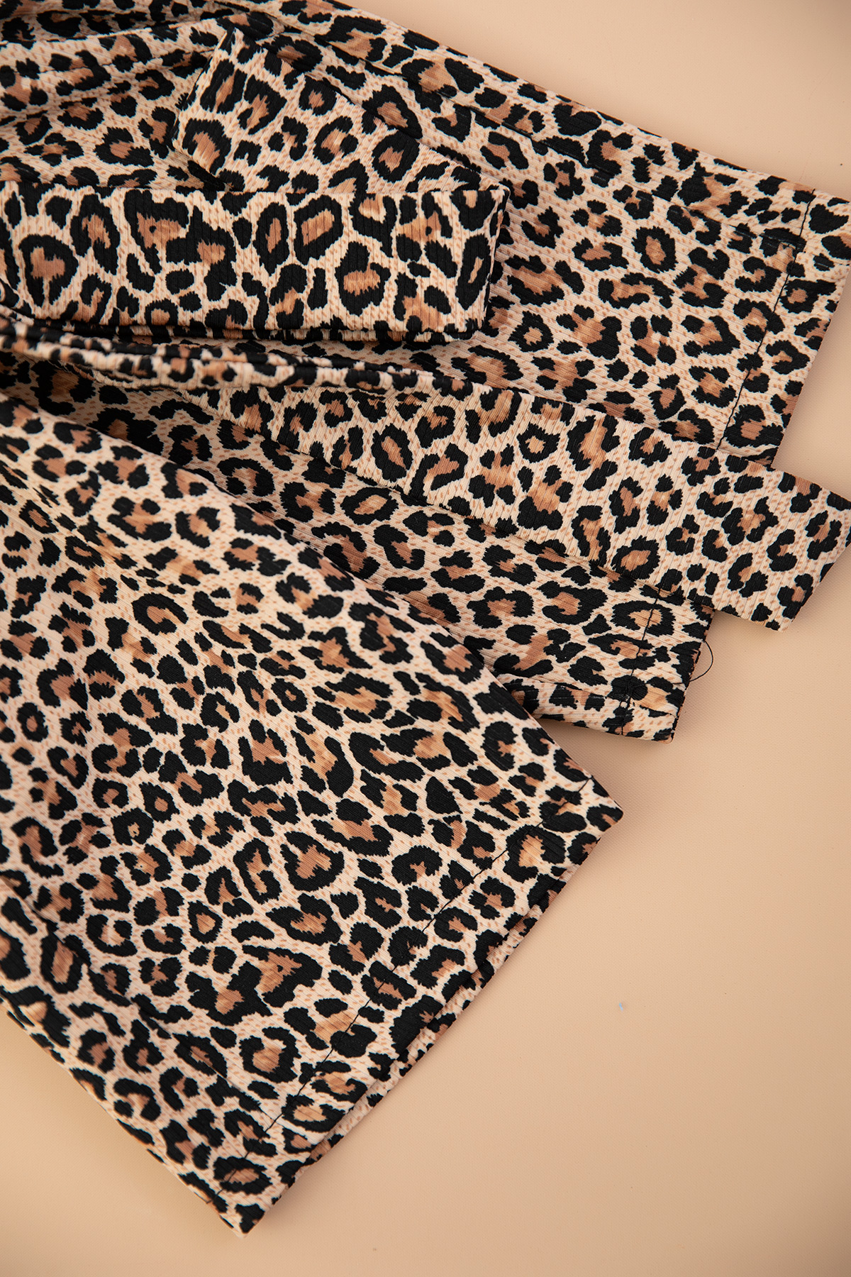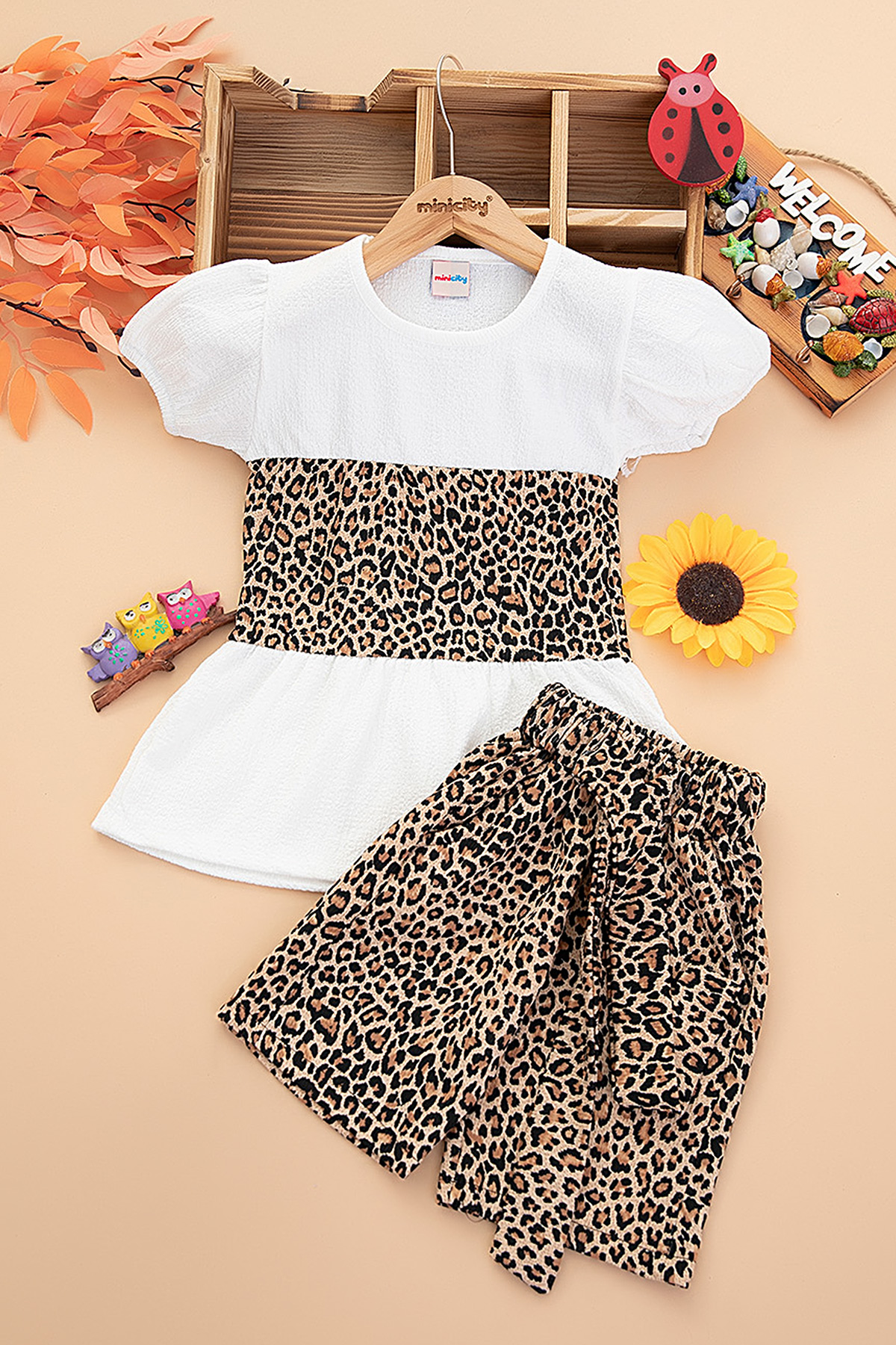 Kız Çocuk Leopar Kalp Nakışlı Şortlu Takım - 10168 (5-8 Yaş)