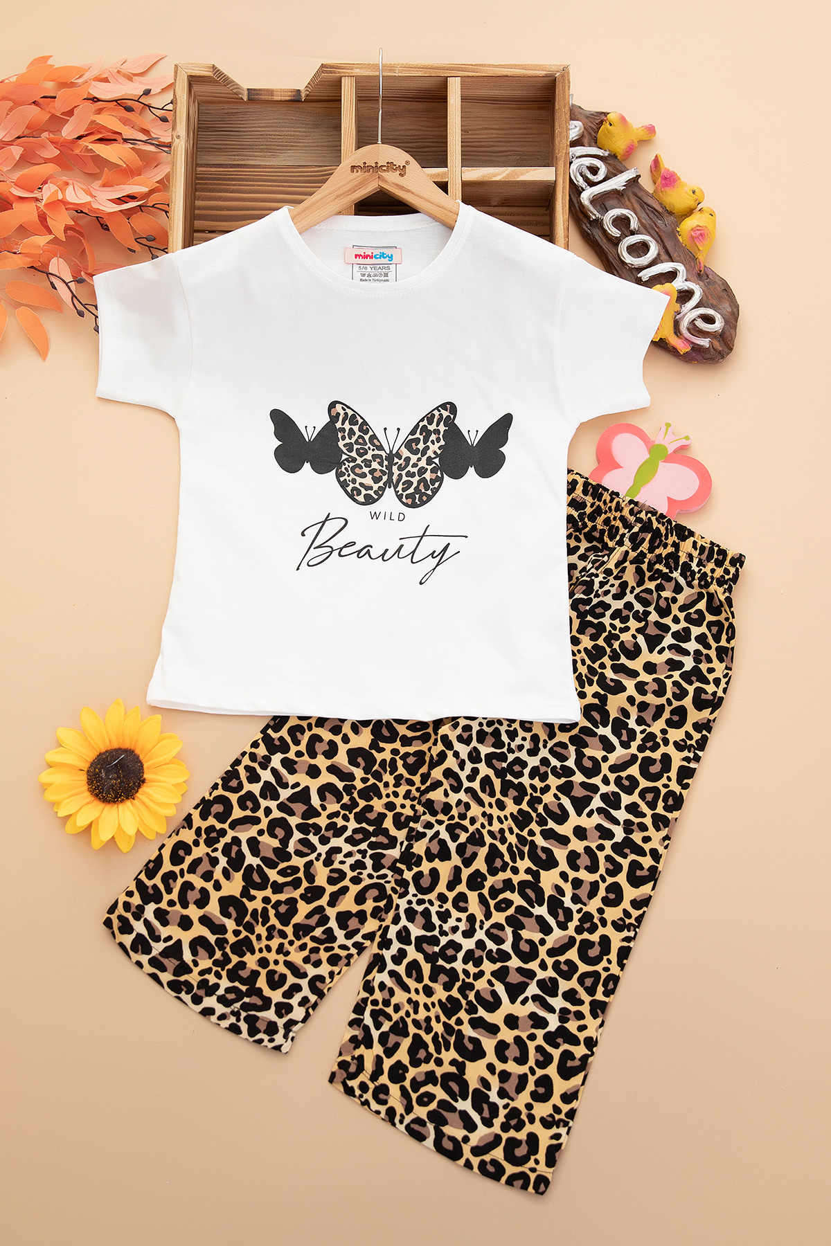 Kız Çocuk Leopar Kelebek Baskılı Takım - 30750 (5-12 Yaş)