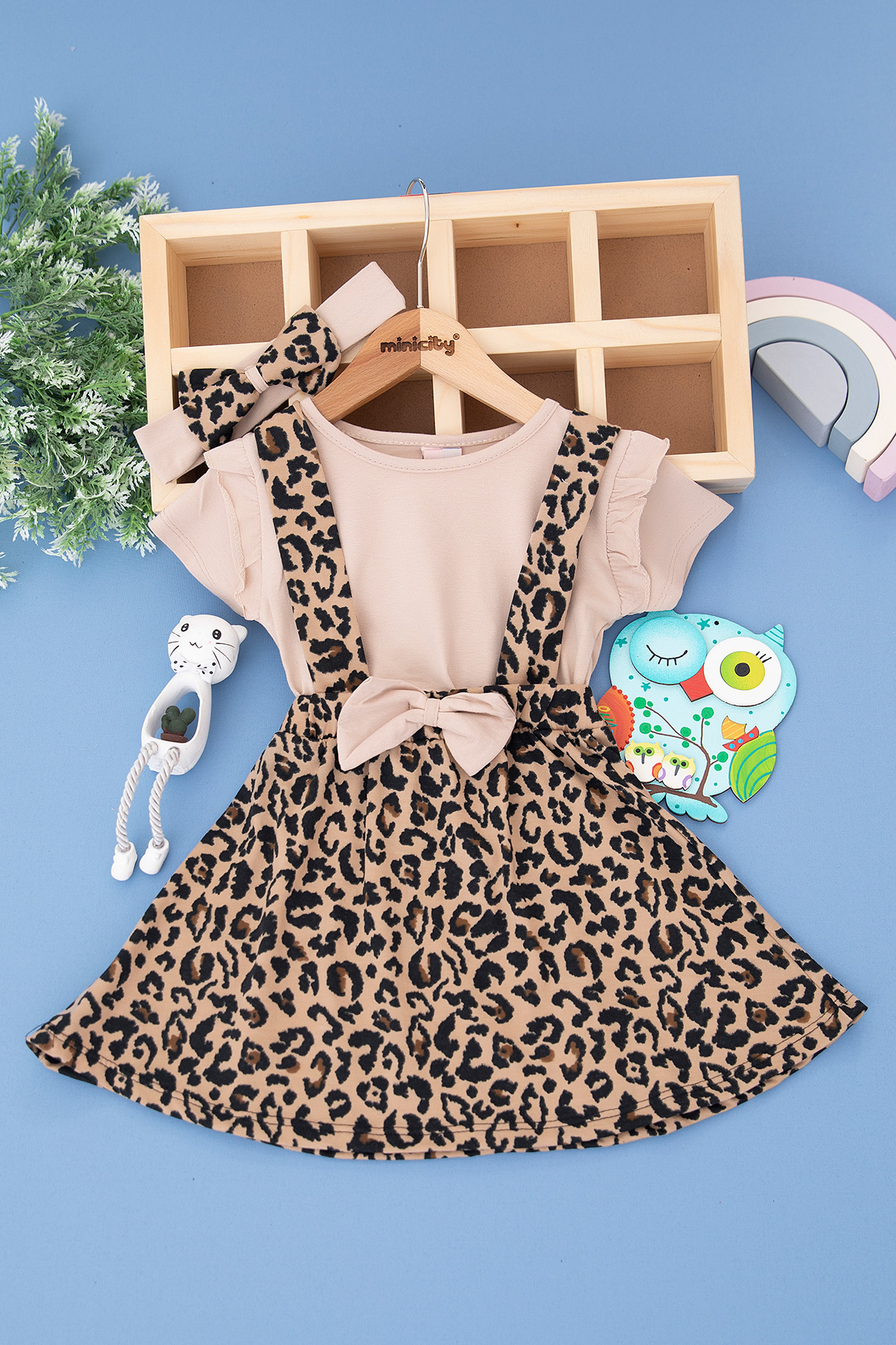 Kız Çocuk Leopar Kompak Salopet - 8111 (4-8 Yaş)