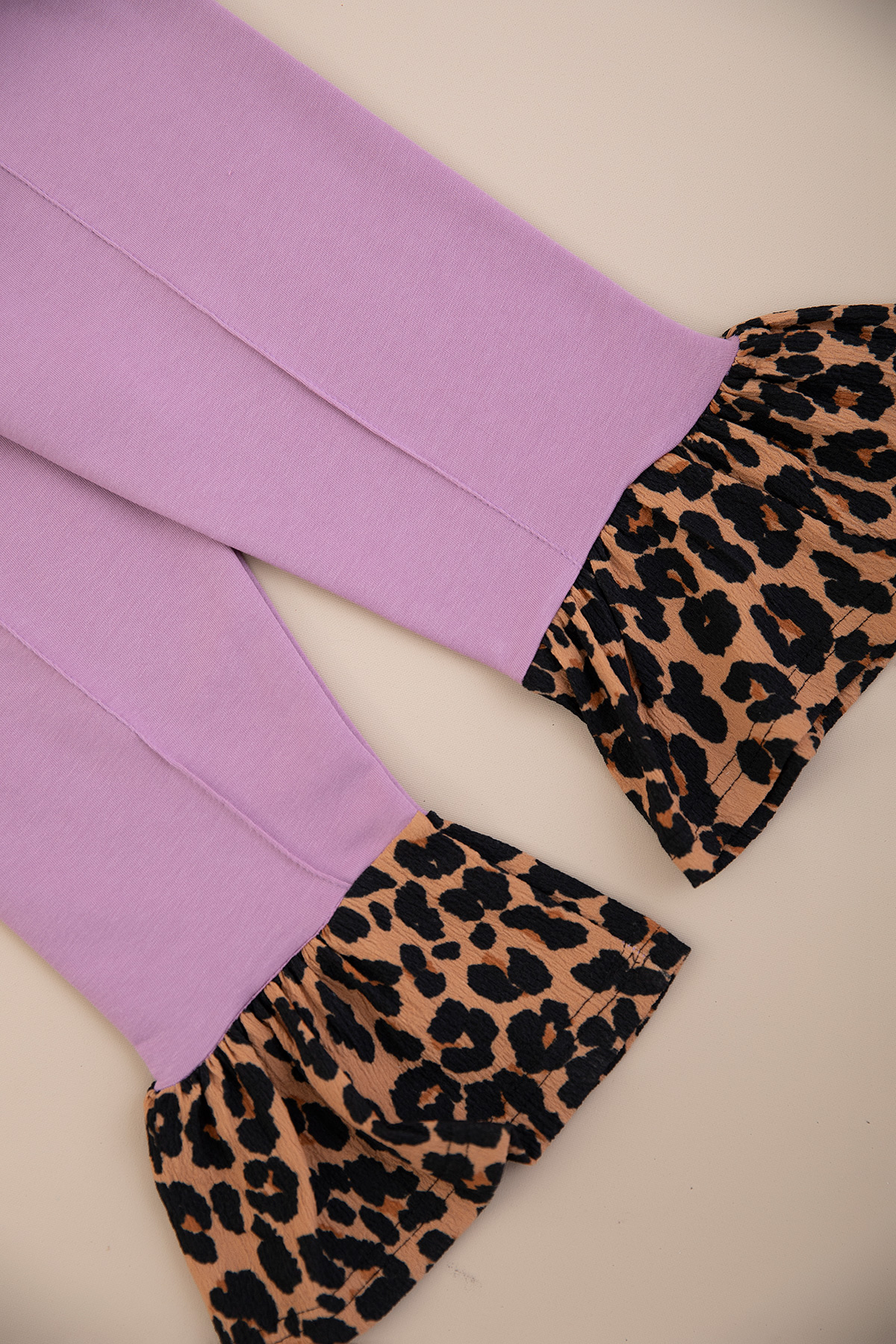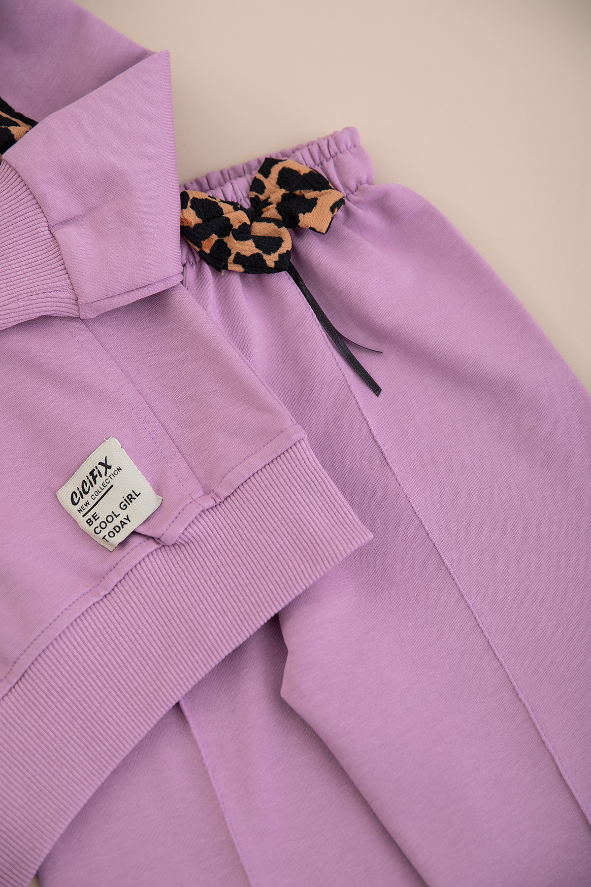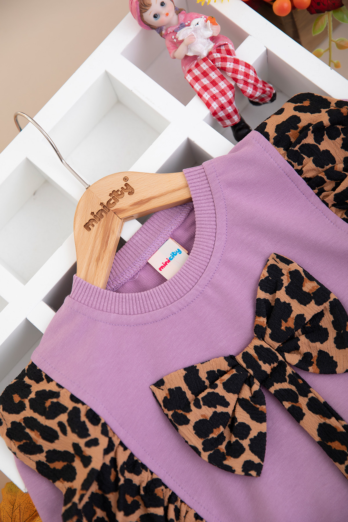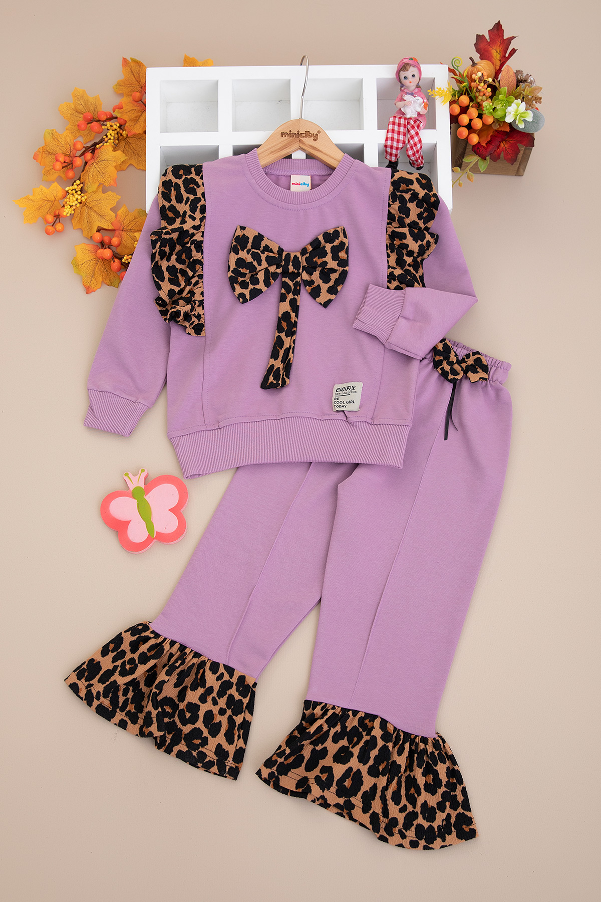 Kız Çocuk Leopar Şeritli Fiyonklu Takım - 2522 (4-12 Yaş)