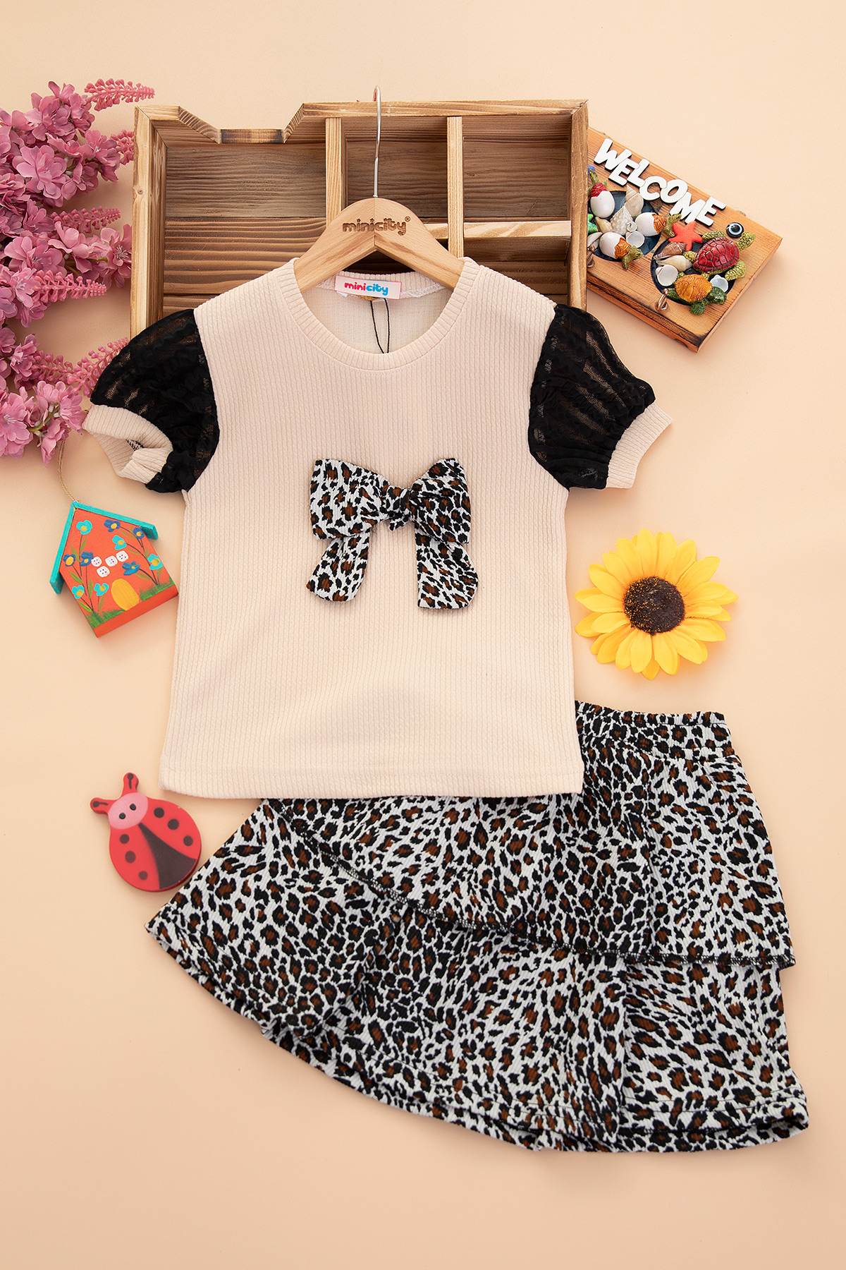 Kız Çocuk Leopar T-Shirt Etekli Takım - 3065 (5-9 Yaş)