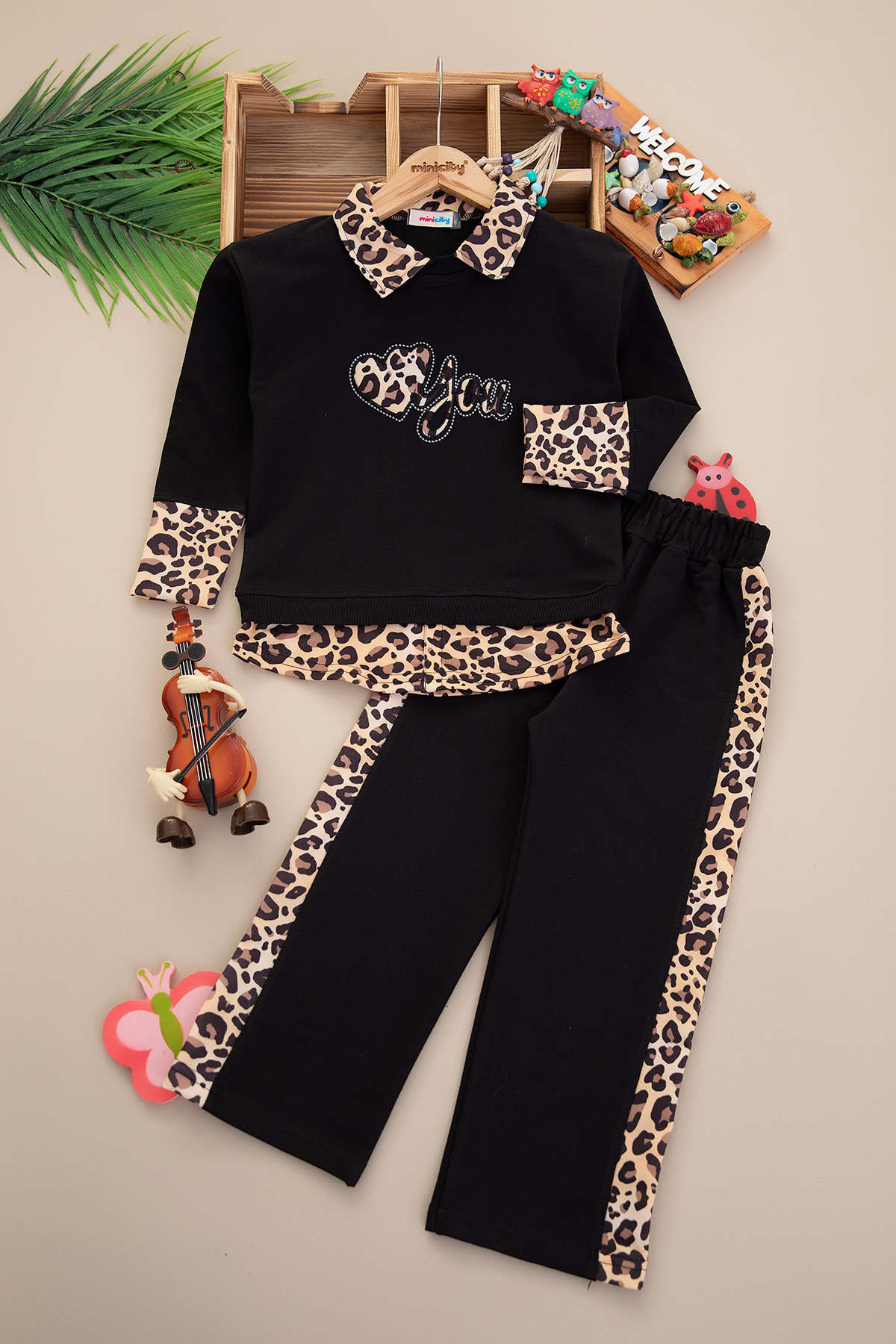Kız Çocuk Leopar You Nakışlı Takım - 200855 (4-11 Yaş)