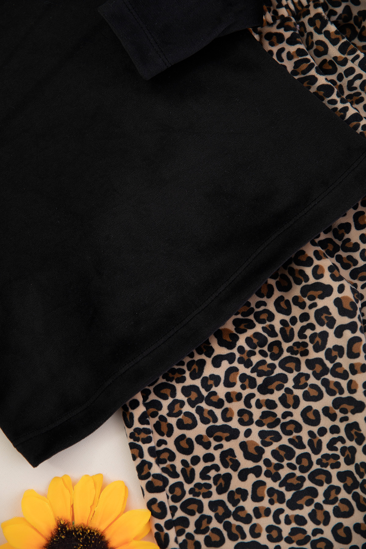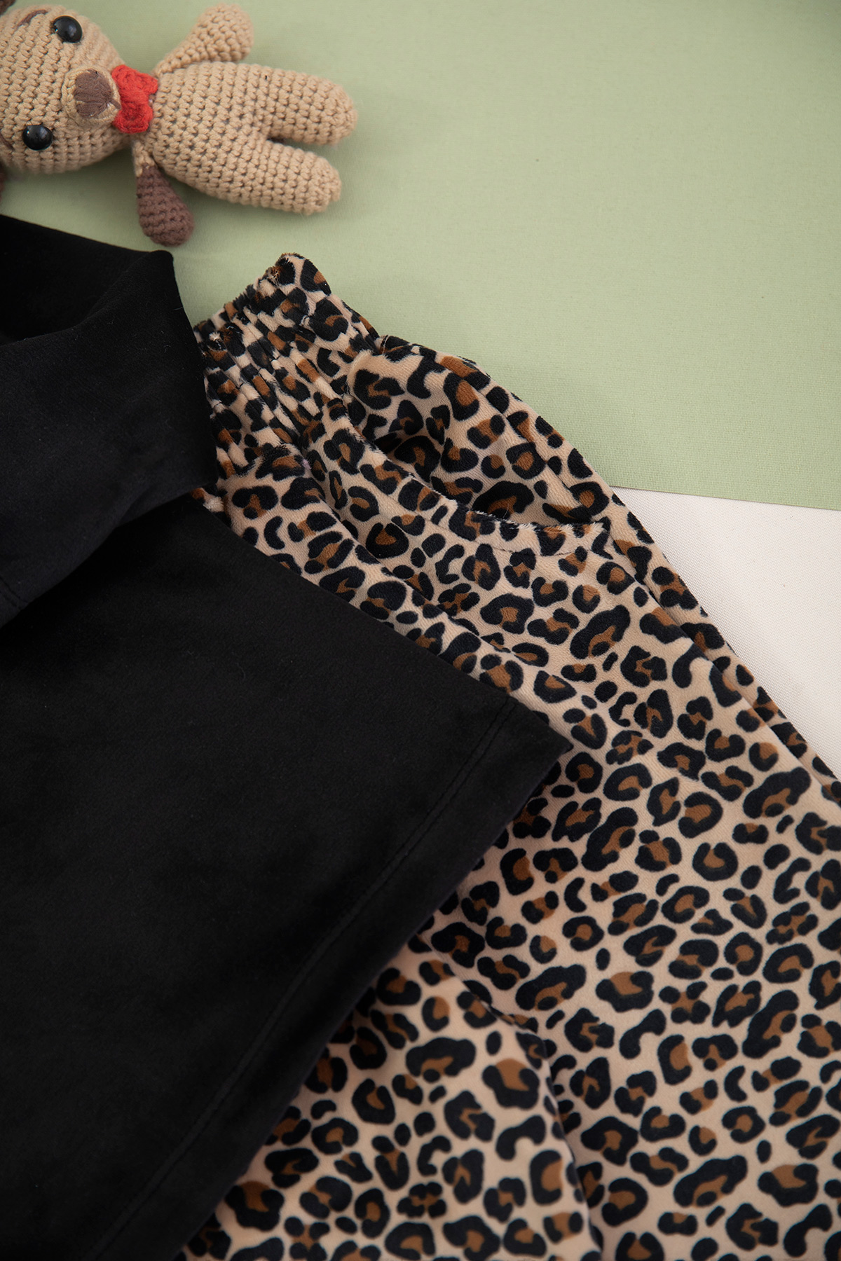 Kız Çocuk Leoparlı Kadife Takım - 9548 (4-8 Yaş)