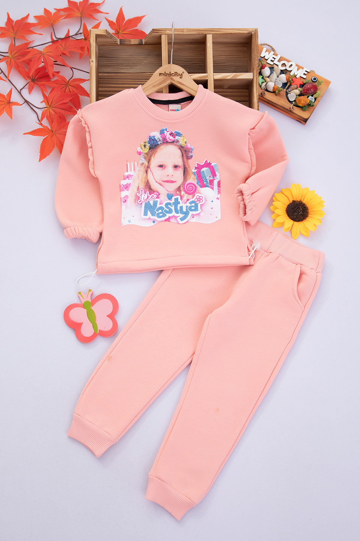 Kız Çocuk Like Nastya Baskılı Üçip Takım - 243 (3-7 Yaş)