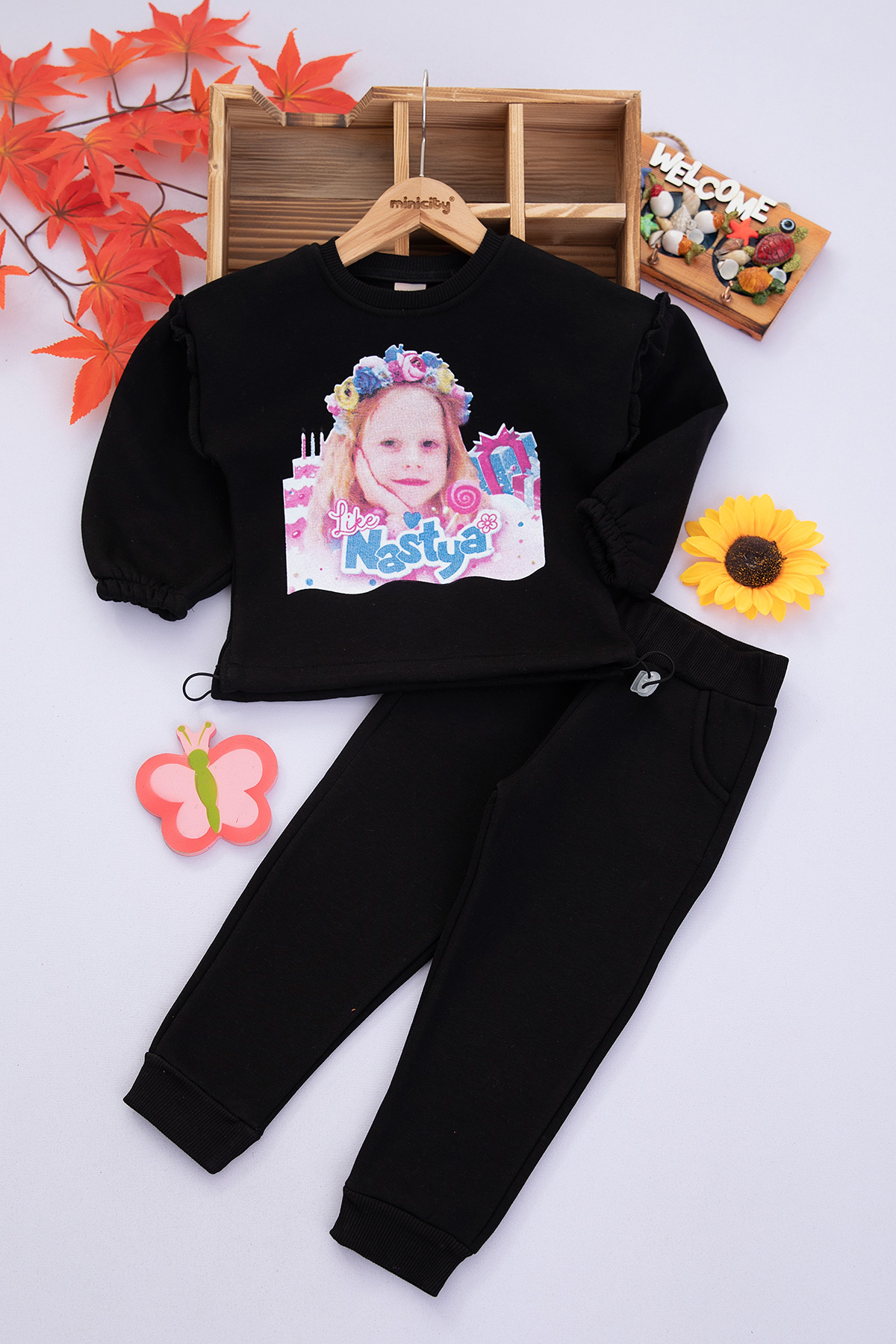 Kız Çocuk Like Nastya Baskılı Üçip Takım - 243 (3-7 Yaş)
