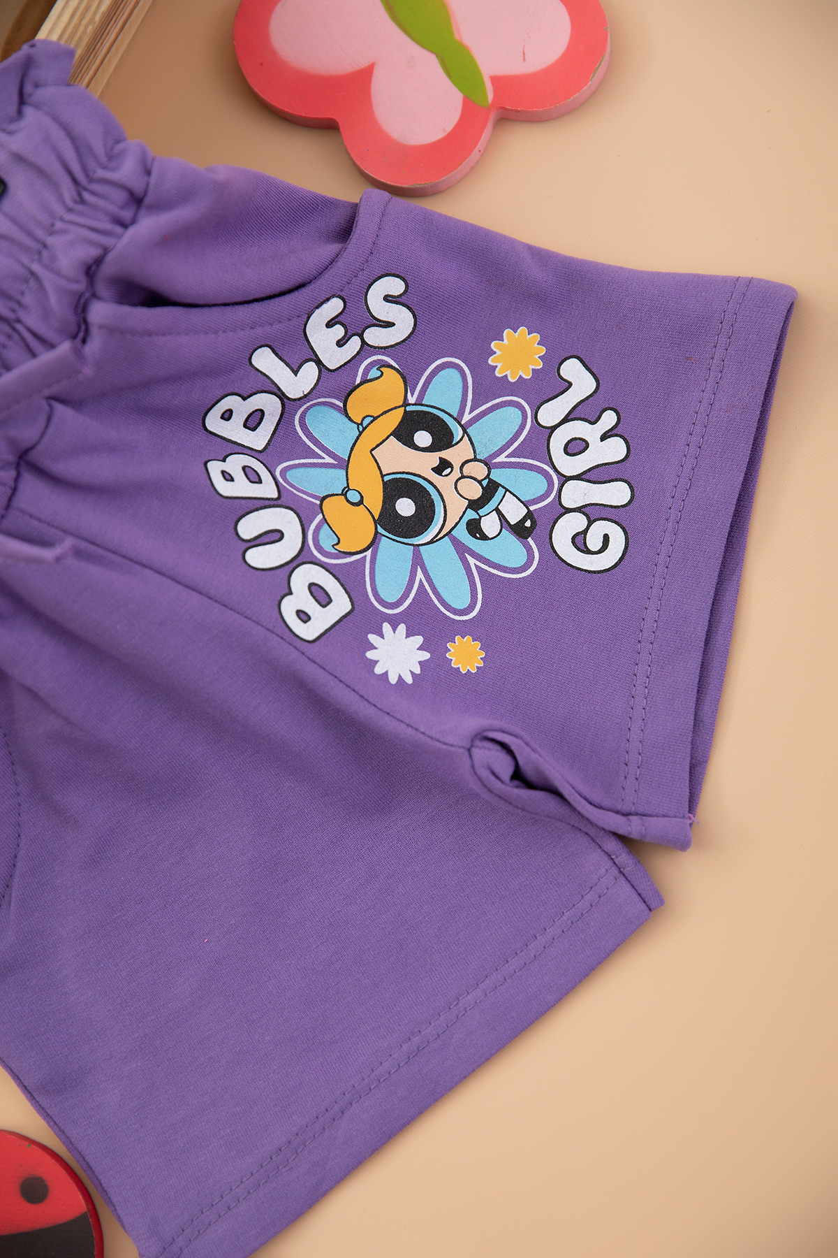 Kız Çocuk Likralı Baskılı Penye Şort - 2054 (1-8 Yaş)