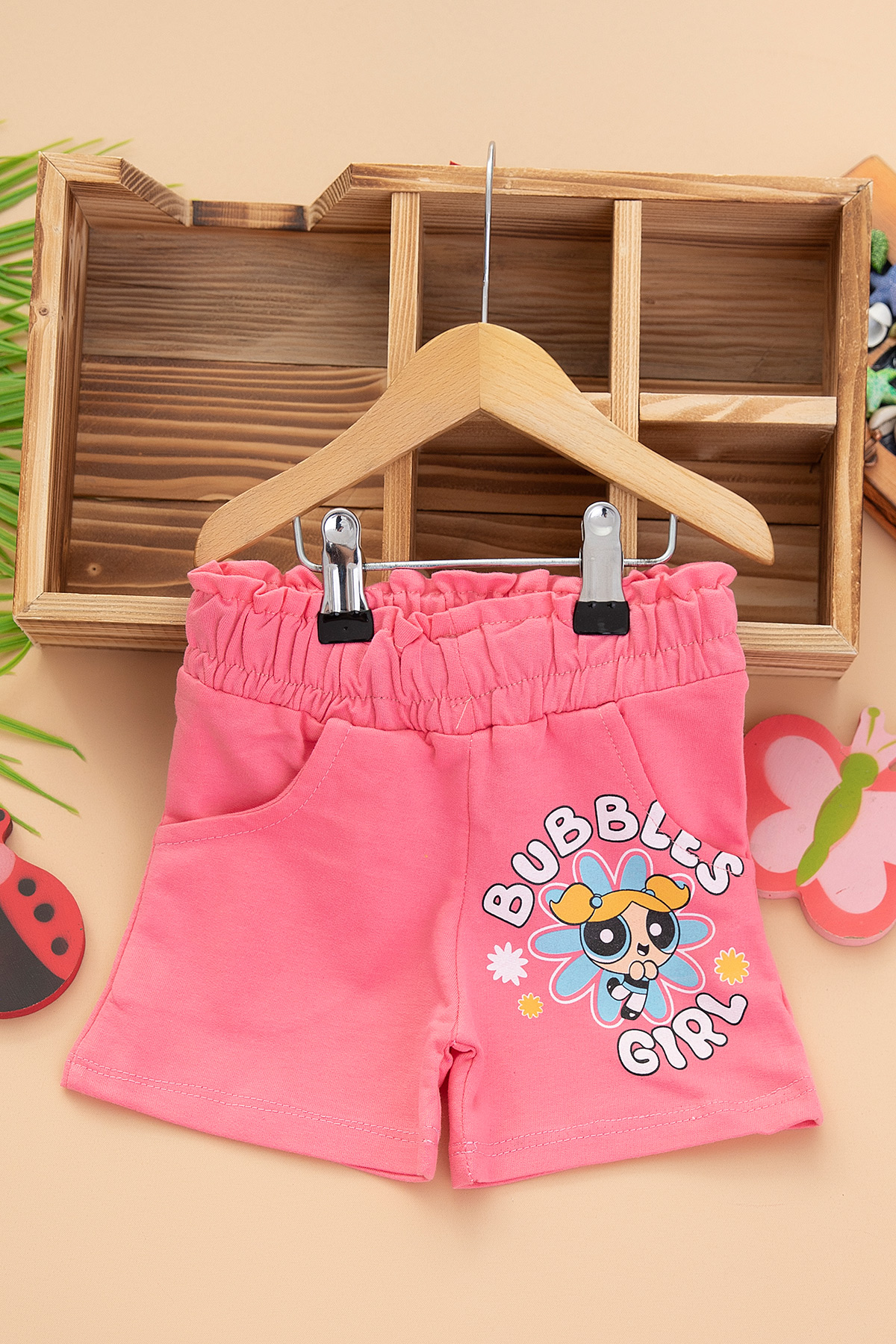 Kız Çocuk Likralı Baskılı Penye Şort - 2054 (1-8 Yaş)