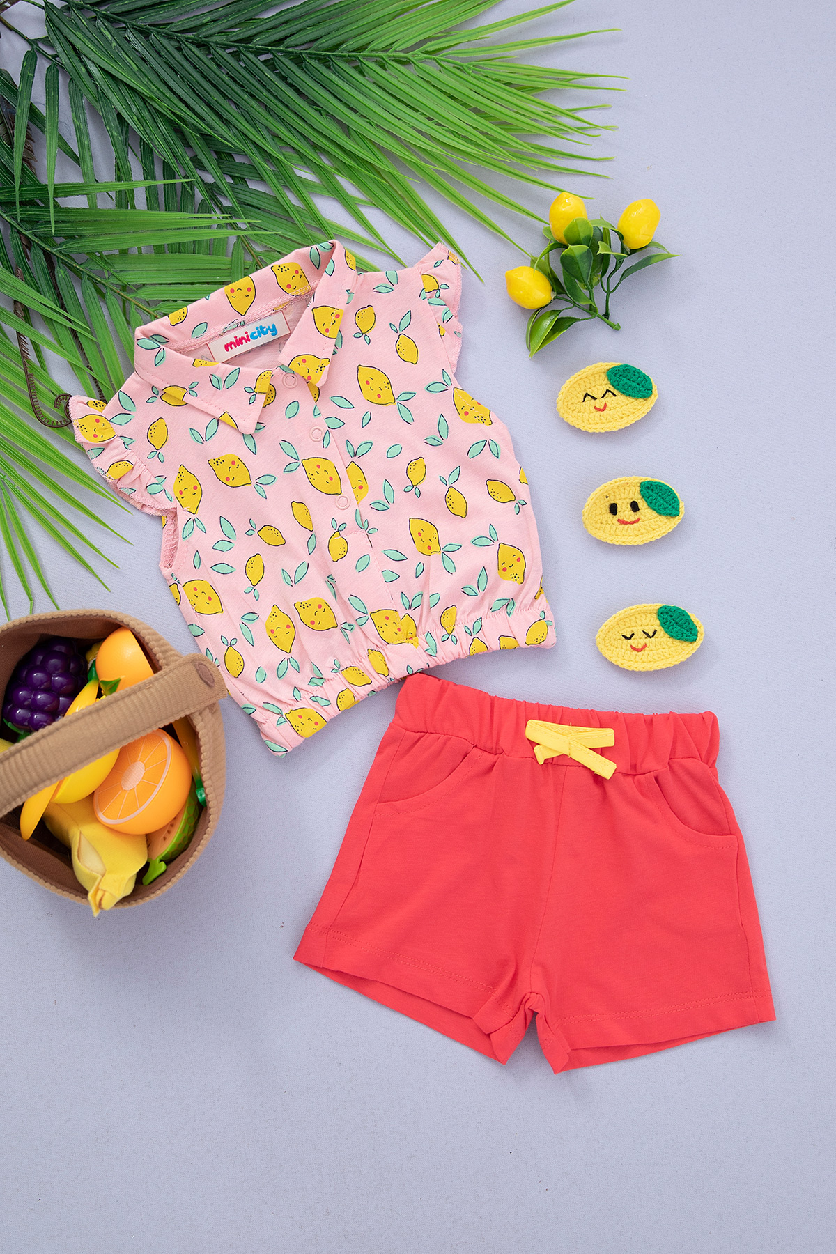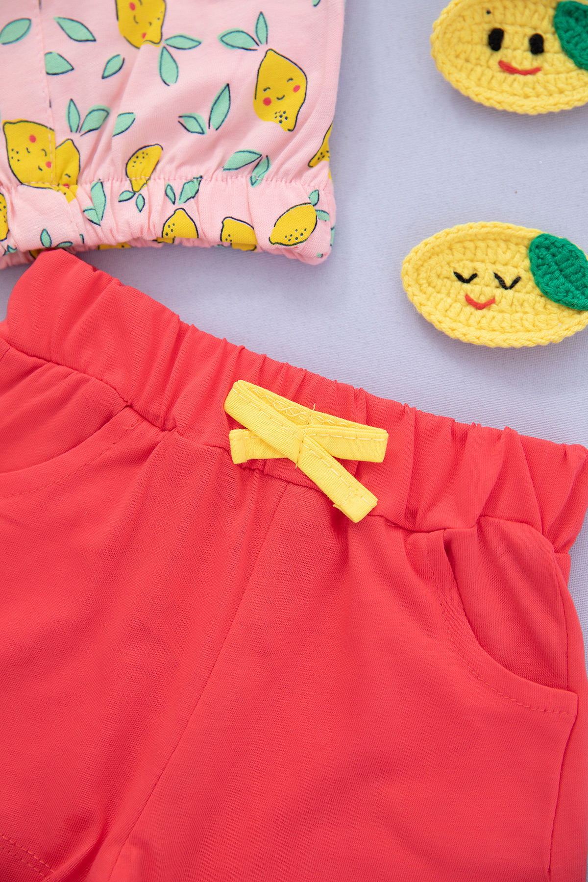 Kız Çocuk Limon Baskılı Şortlu Takım - 22203 (3-6 Yaş)