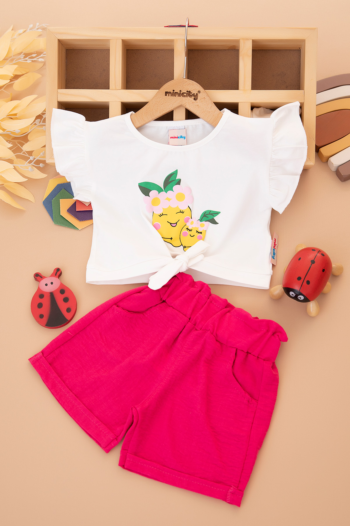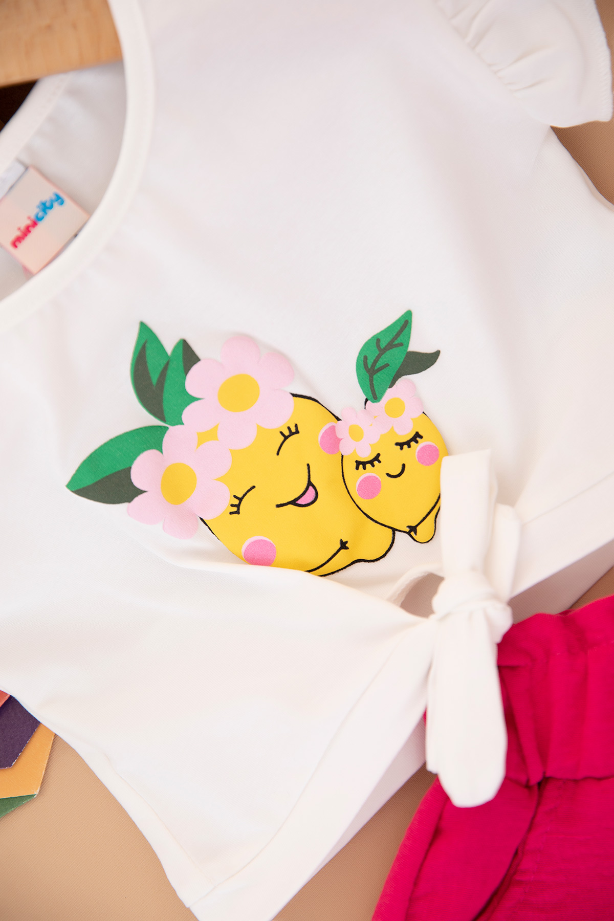 Kız Çocuk Limon Baskılı Şortlu Takım - 25149 (7-10 Yaş)