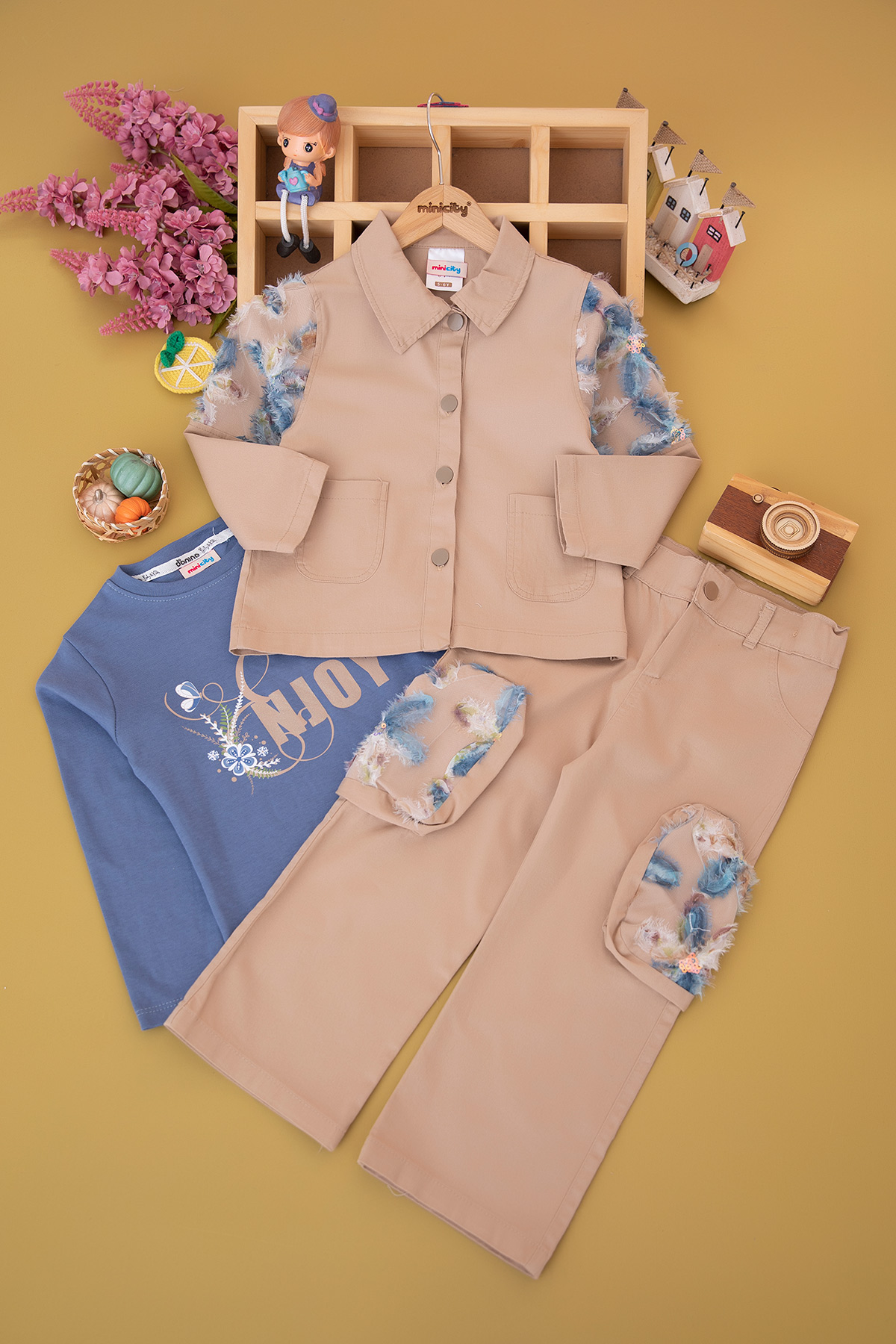 Kız Çocuk Lotus Çiçekli Üçlü Takım - 50649 (5-8 Yaş)