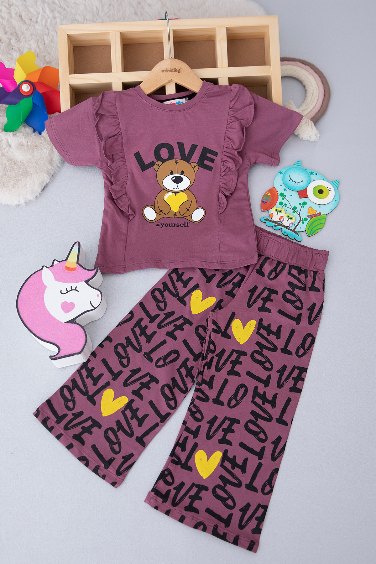 Kız Çocuk Love Ayıcık Baskılı Takım - 3383 (2-5 Yaş)