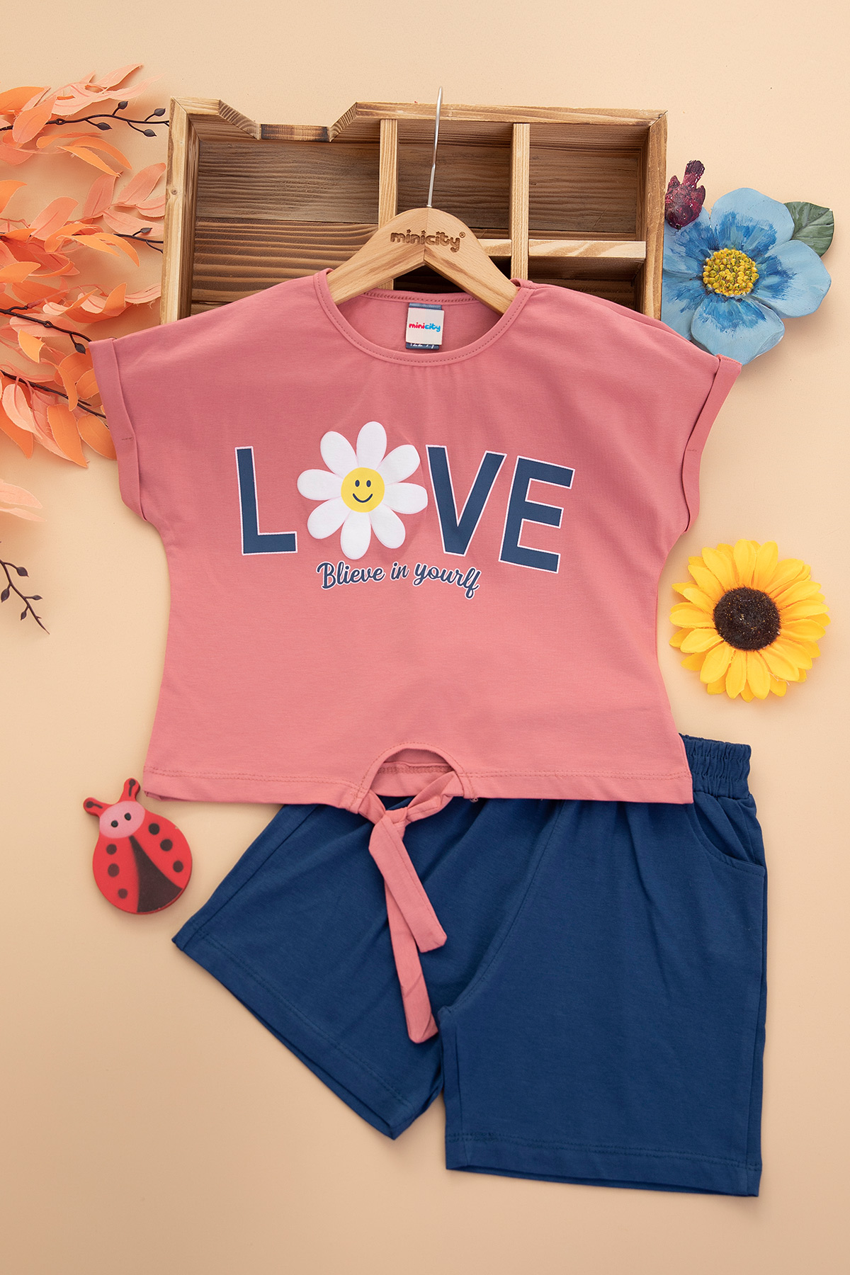 Kız Çocuk Love Baskılı Şortlu Takım - 25196 (7-10 Yaş)