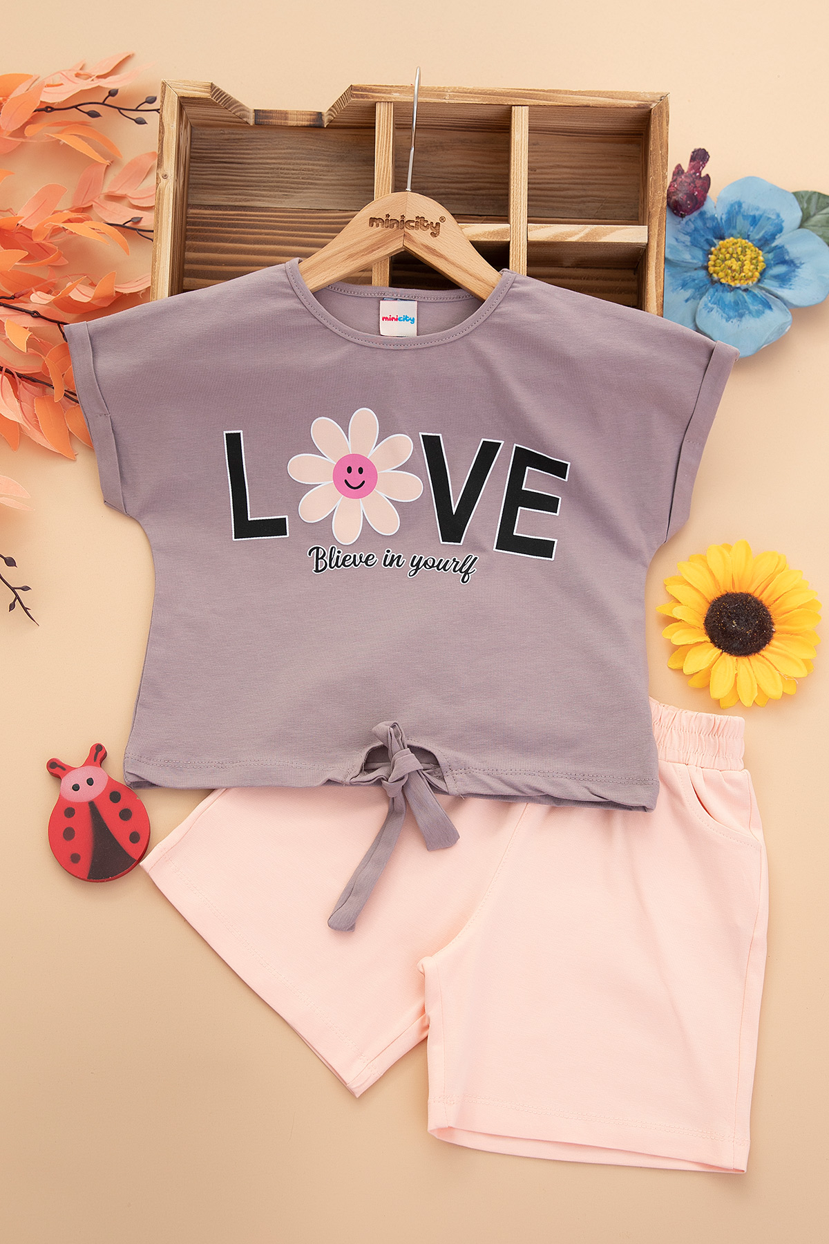 Kız Çocuk Love Baskılı Şortlu Takım - 25196 (7-10 Yaş)