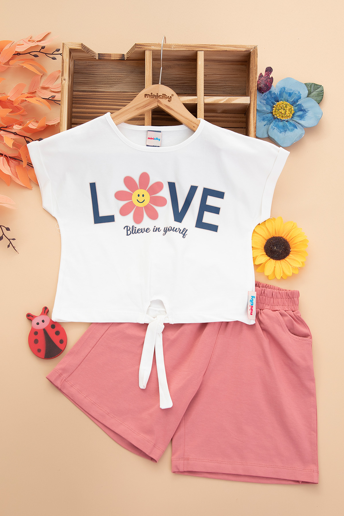 Kız Çocuk Love Baskılı Şortlu Takım - 25593 (3-6 Yaş)