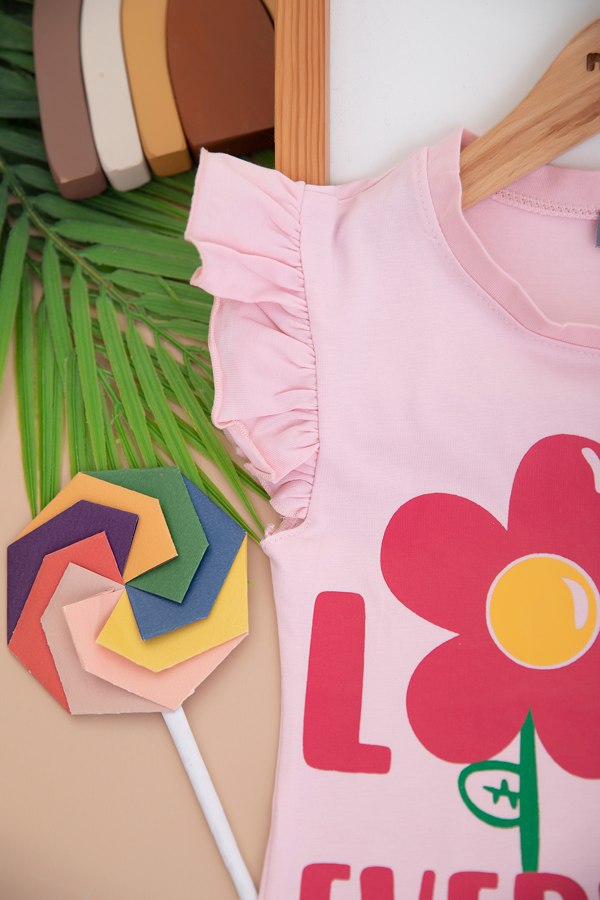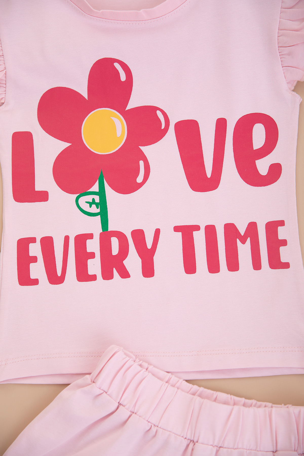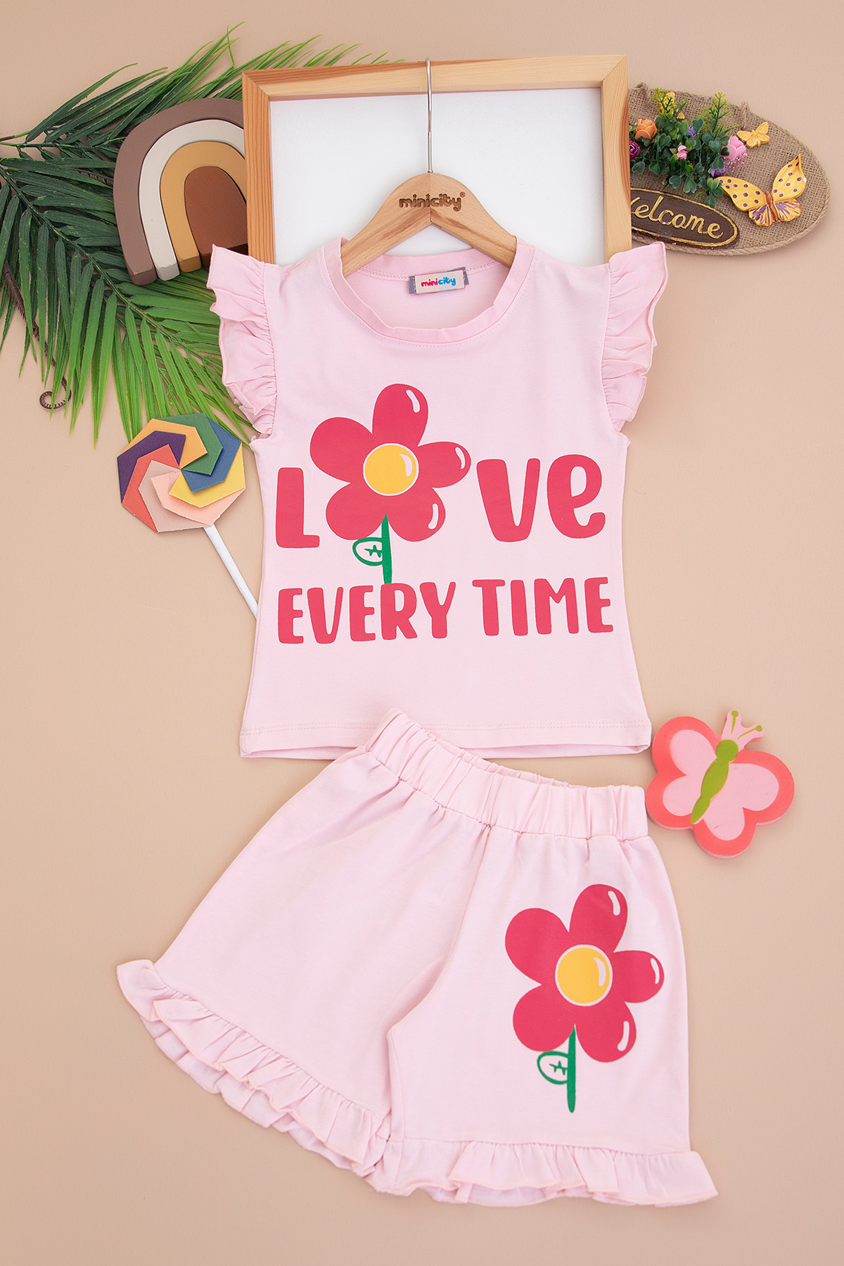 Kız Çocuk Love Baskılı Şortlu Takım - 3838 (3-8 Yaş)