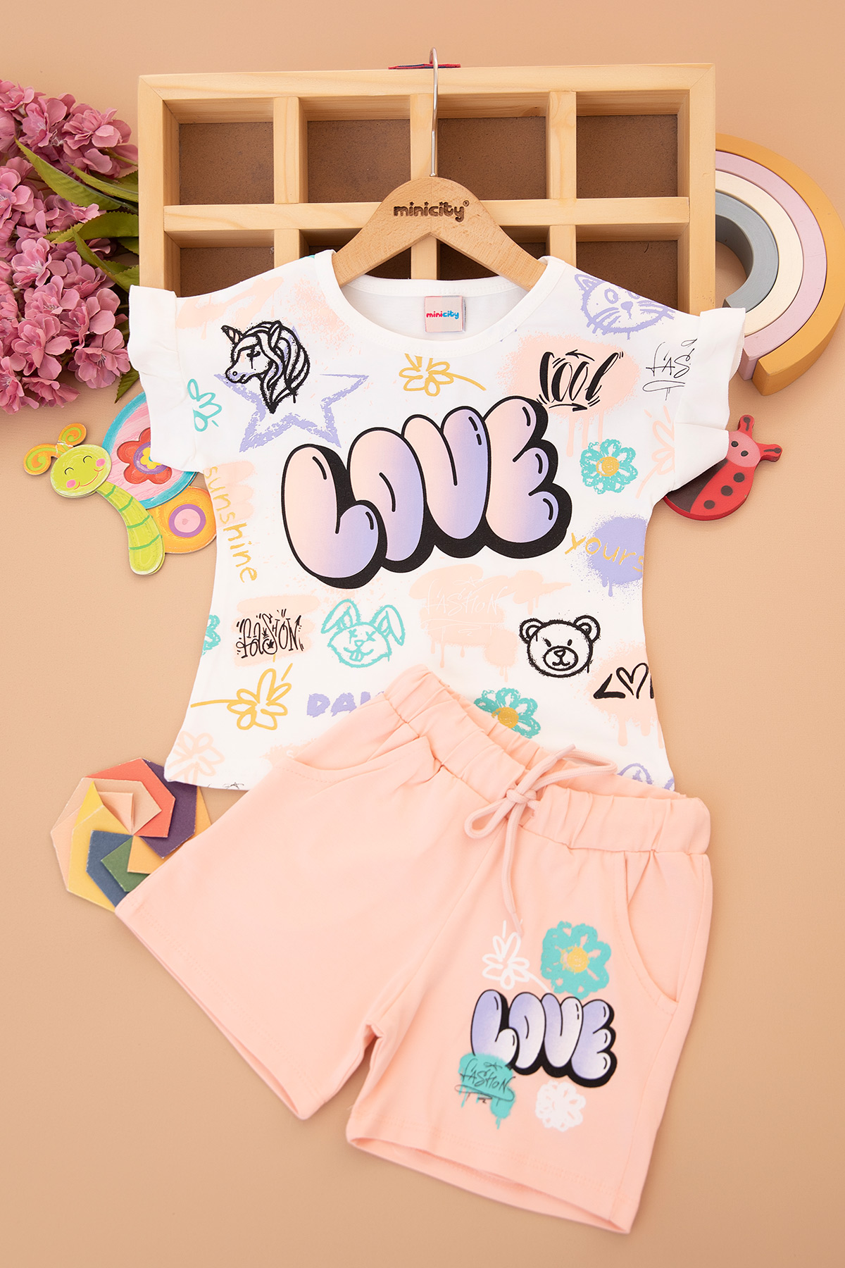 Kız Çocuk Love Baskılı Şortlu Takım - 7622 (3-10 Yaş)