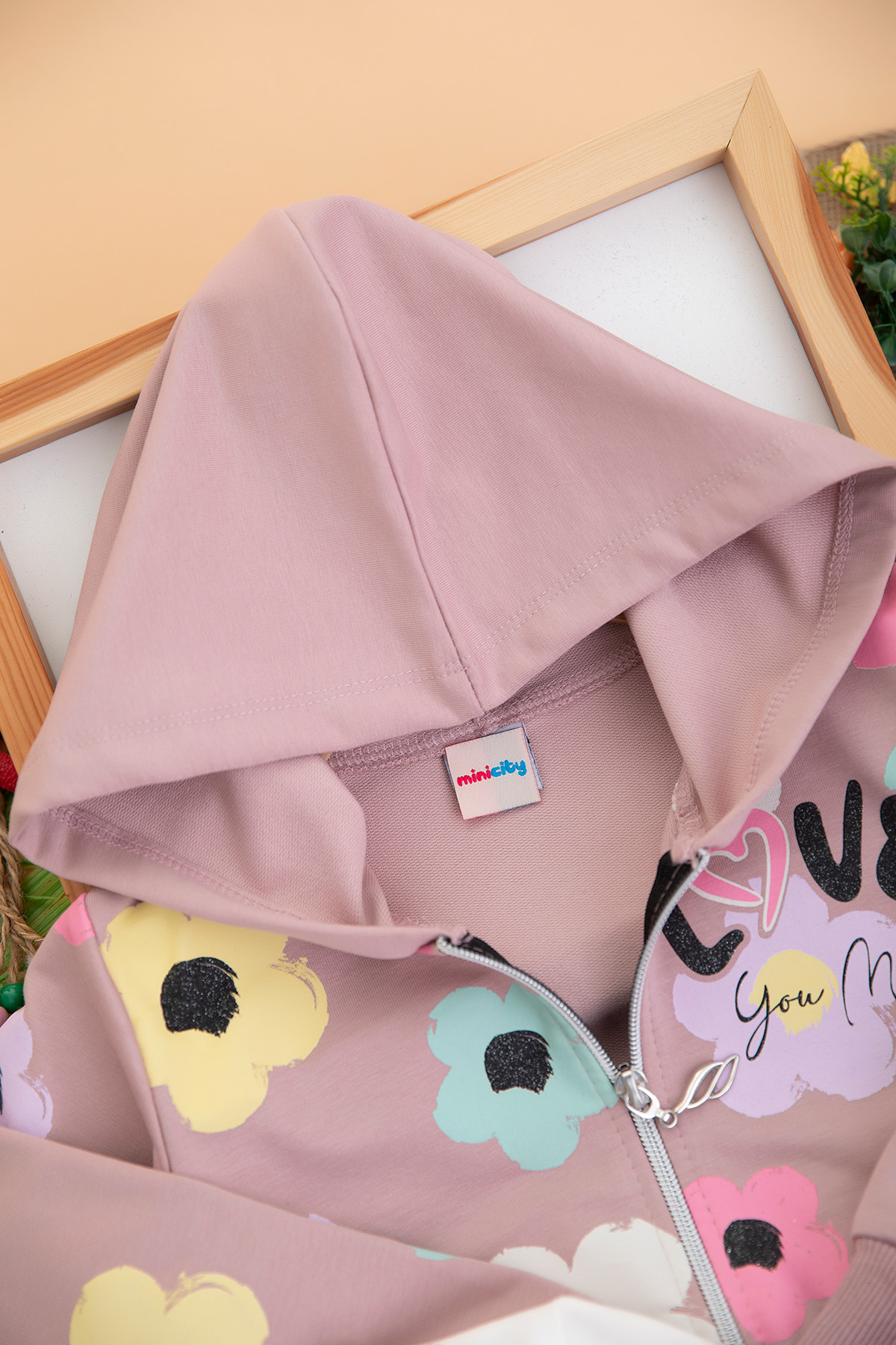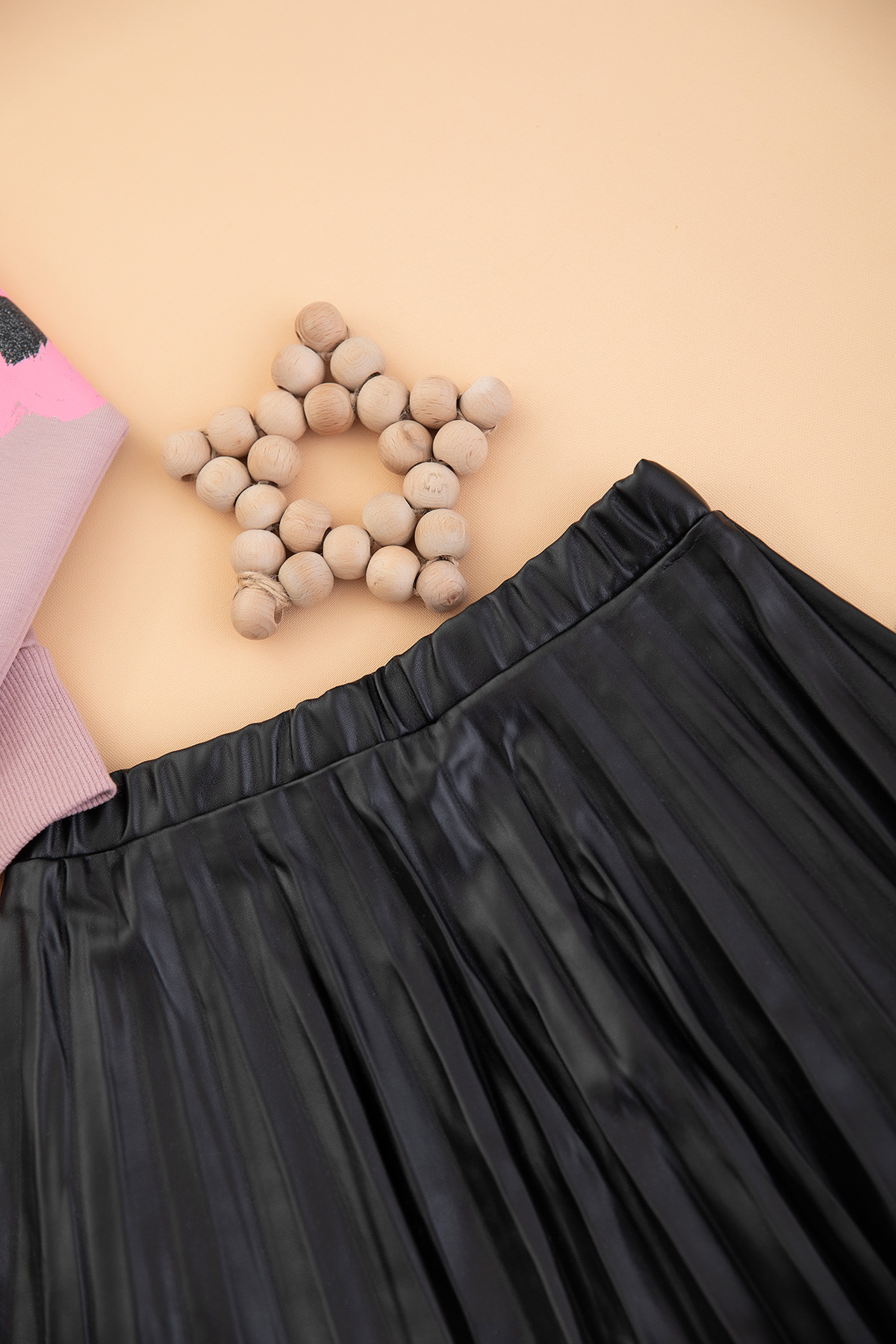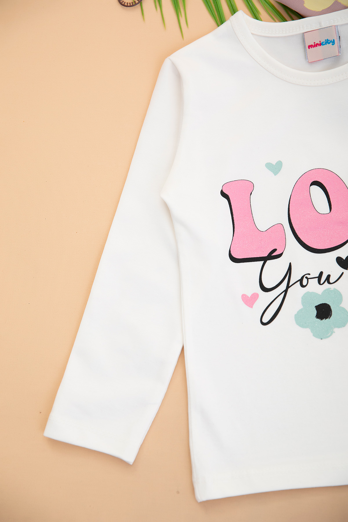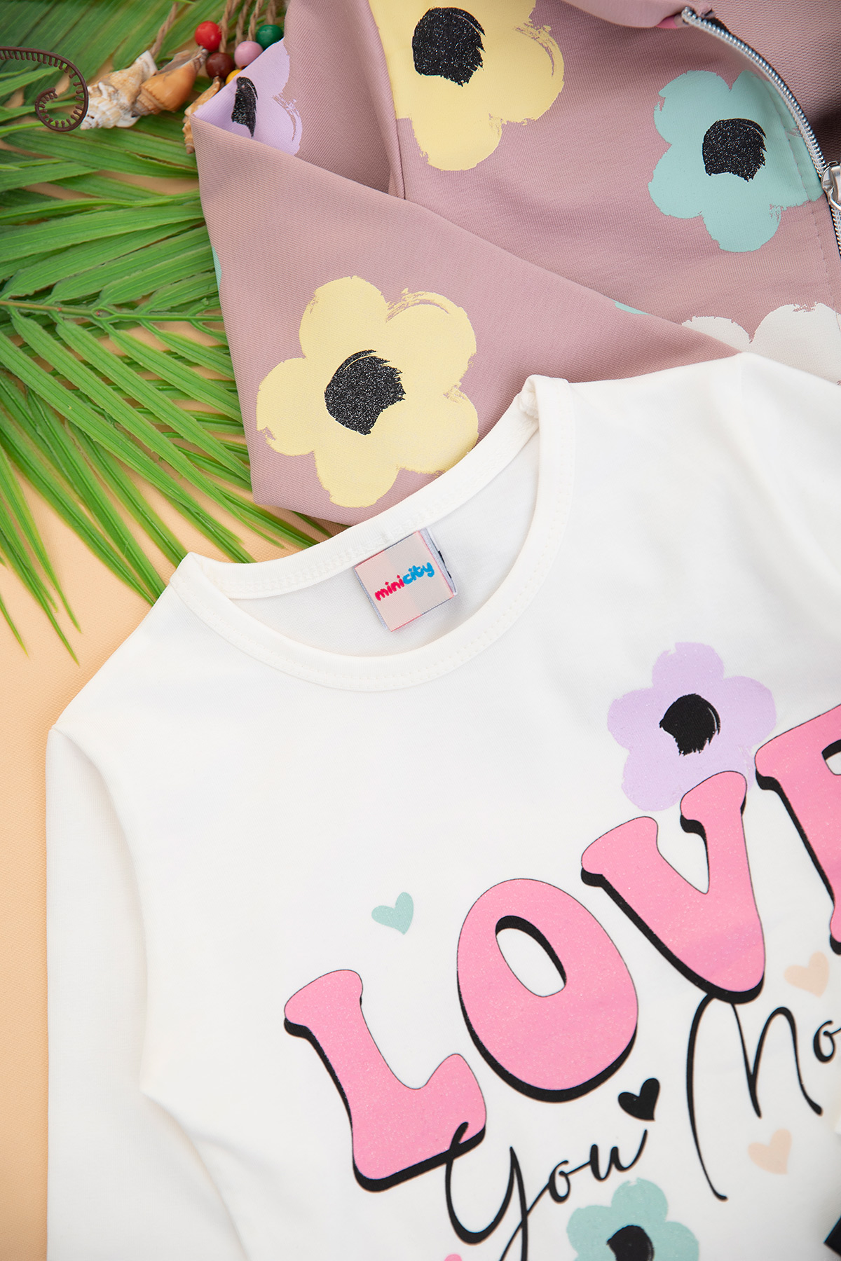 Kız Çocuk Love Çiçekli Baskılı Deri Etekli Takım - 6002 (3-10 Yaş)