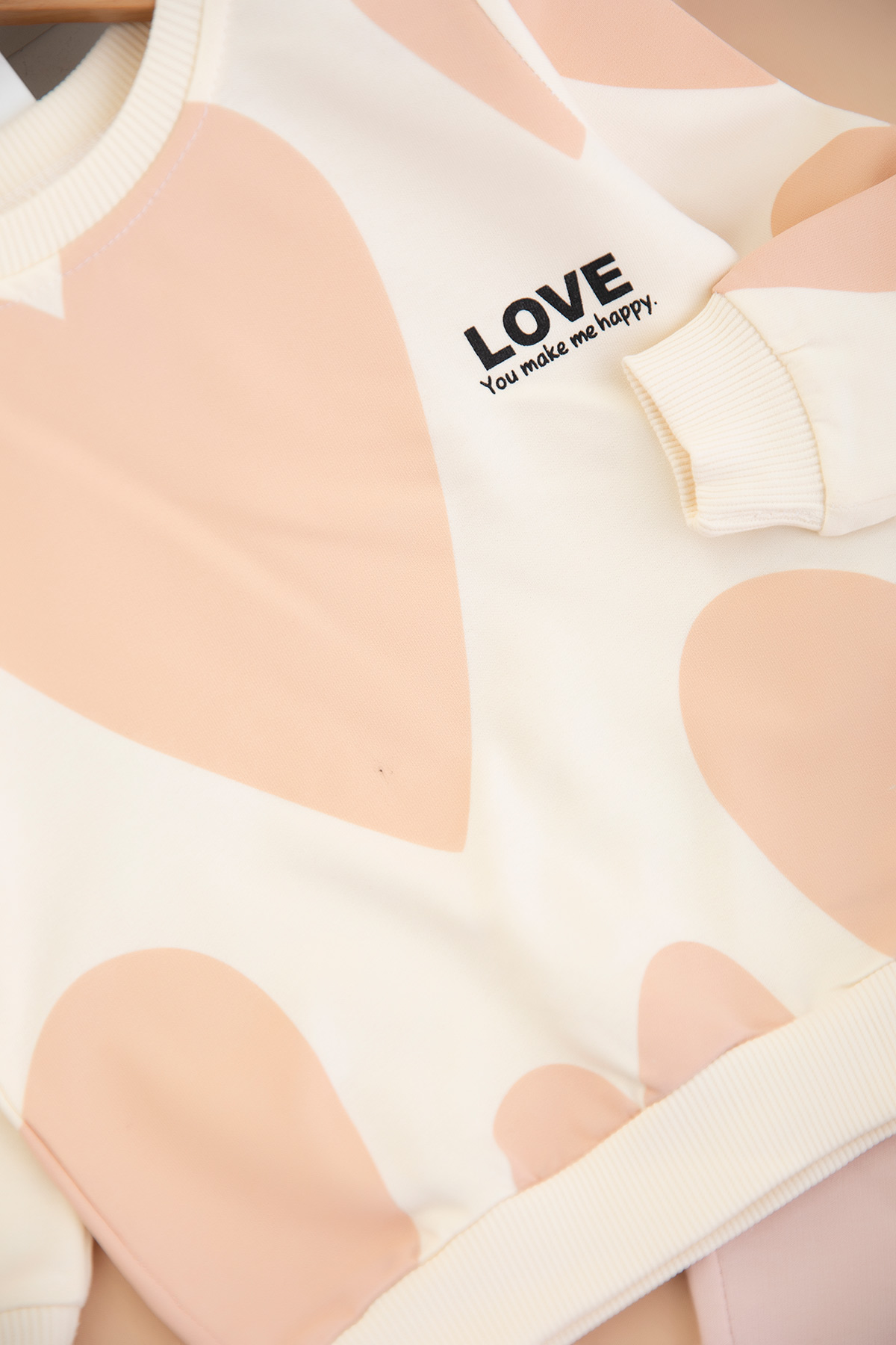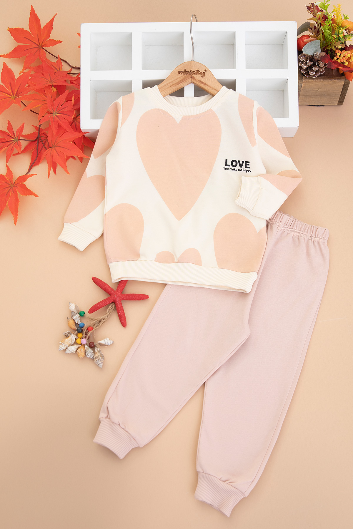 Kız Çocuk Love Kalp Baskılı Takım - 855 (2-5 Yaş)