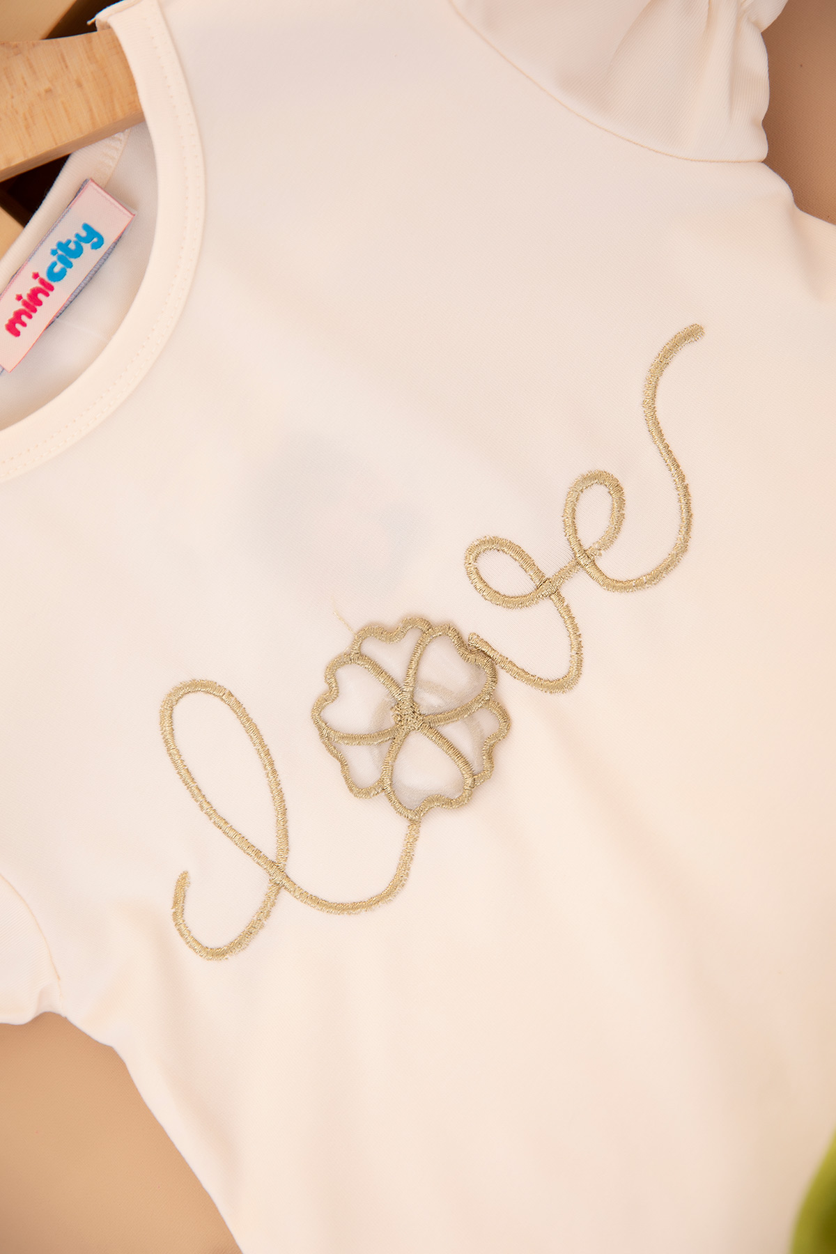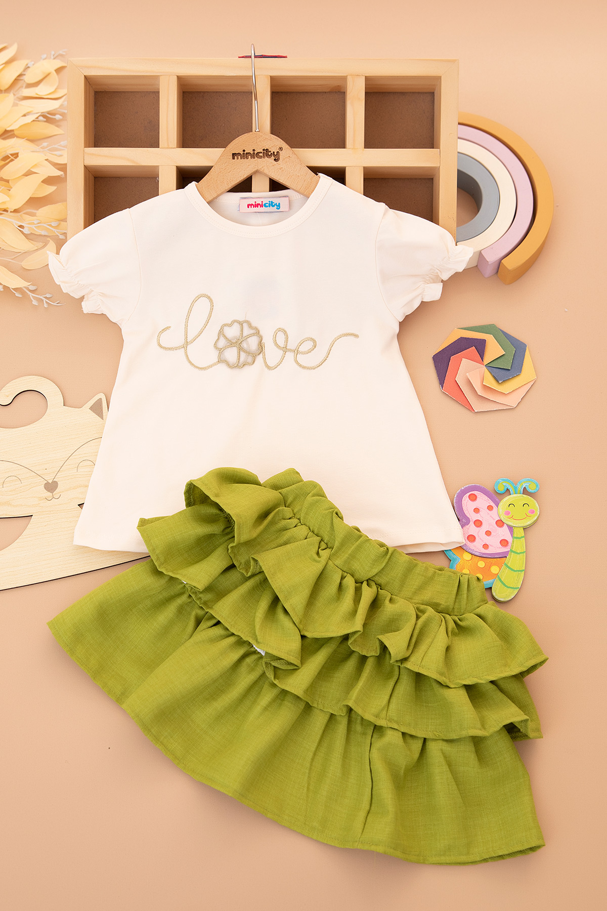 Kız Çocuk Love Nakışlı Etekli Takım - J-687 (3-10 Yaş)