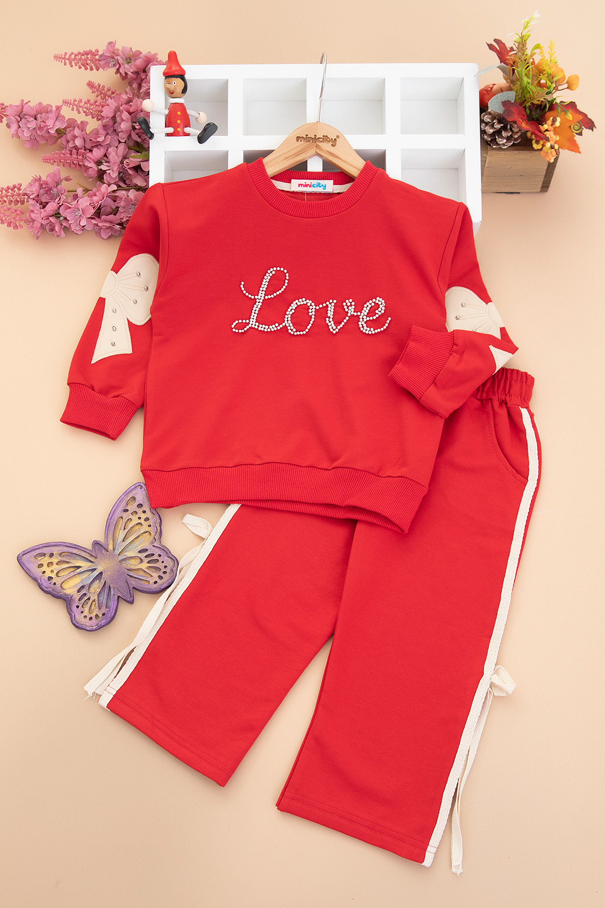 Kız Çocuk Love Taşlı Kolu Fiyonklu Takım (3-10 Yaş)