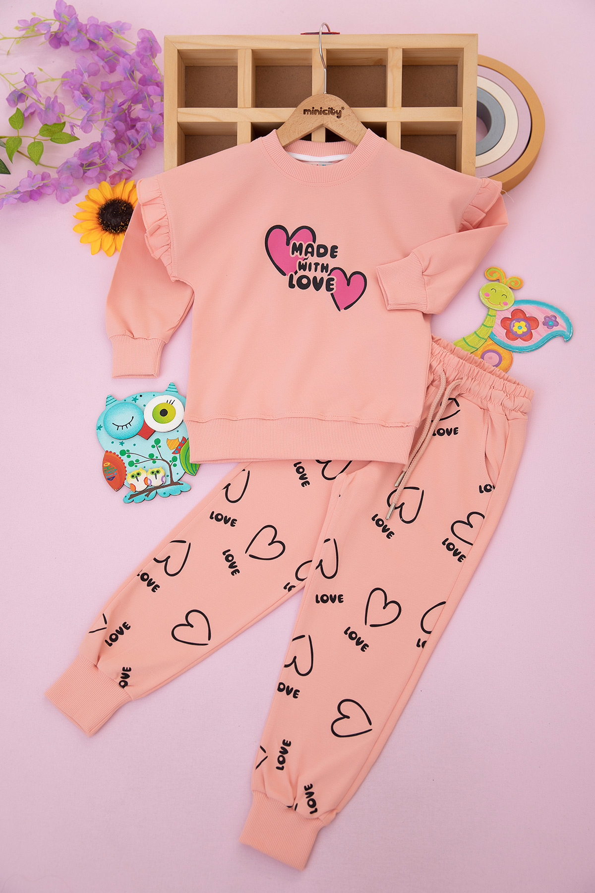 Kız Çocuk Made With Love Baskılı Takım - 404 (7-10 Yaş)