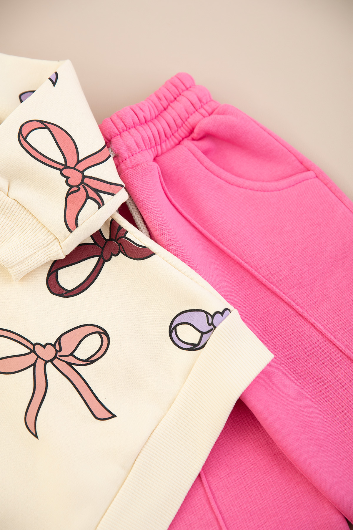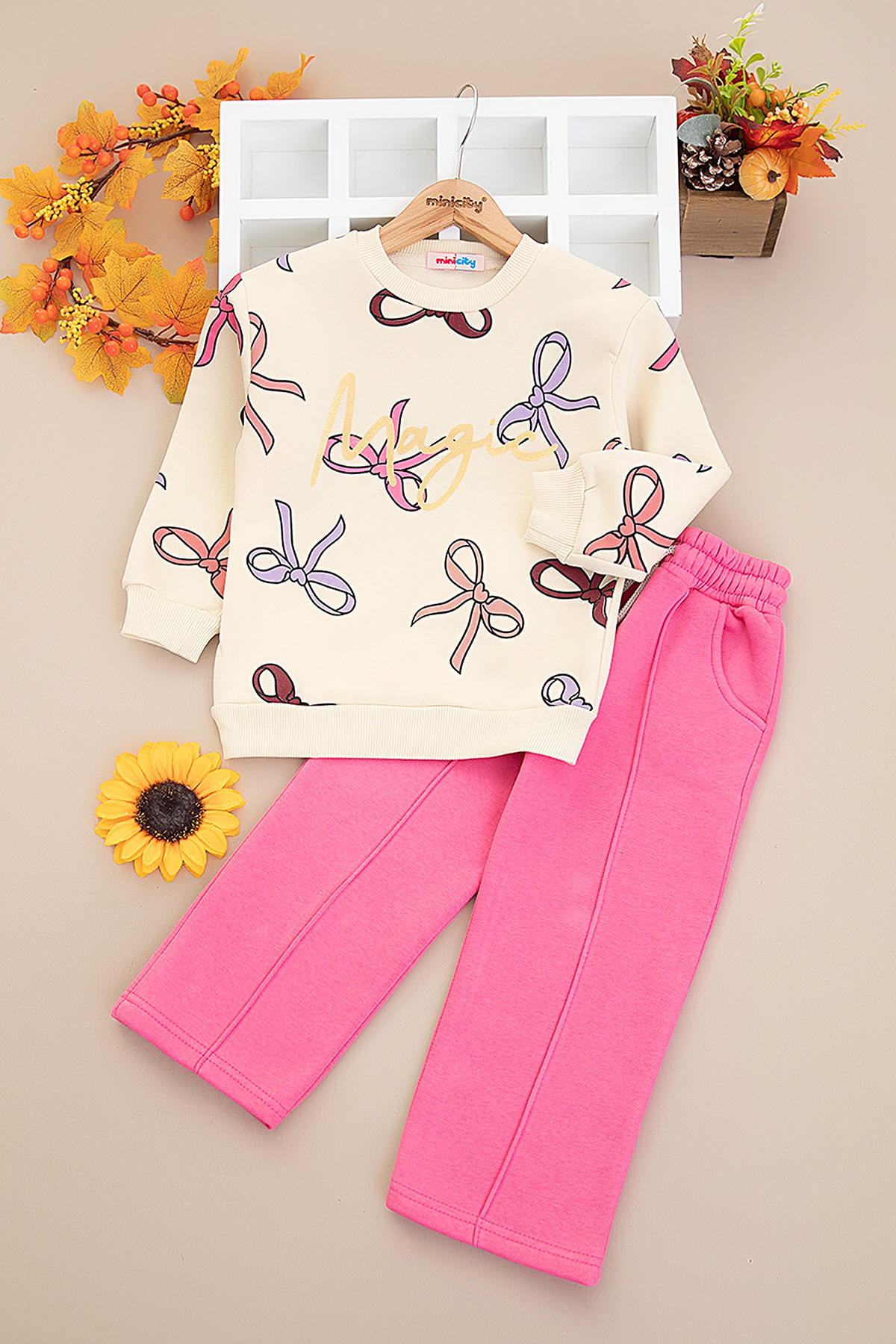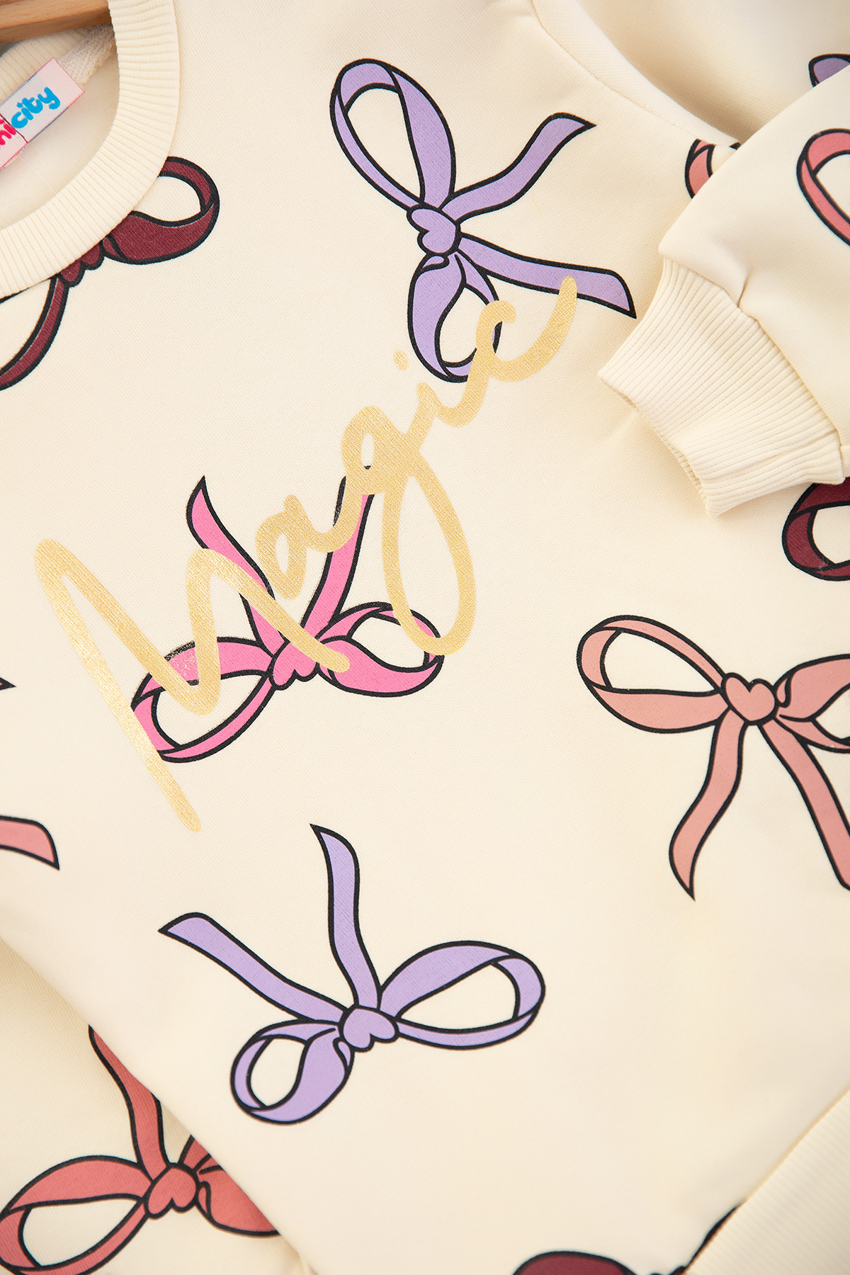 Kız Çocuk Magic Fiyonk Baskılı Üçip Takım (3-10 Yaş)