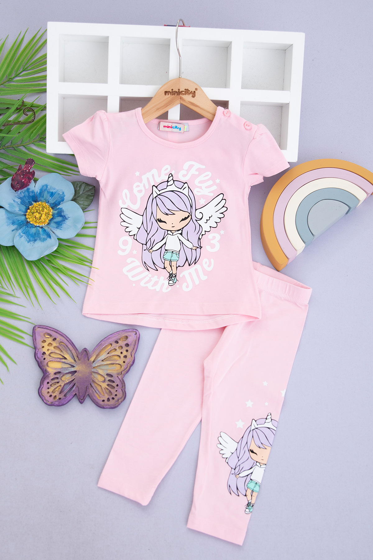 Kız Çocuk Melek Kız Baskılı Taytlı Takım - 614 (1-4 Yaş)