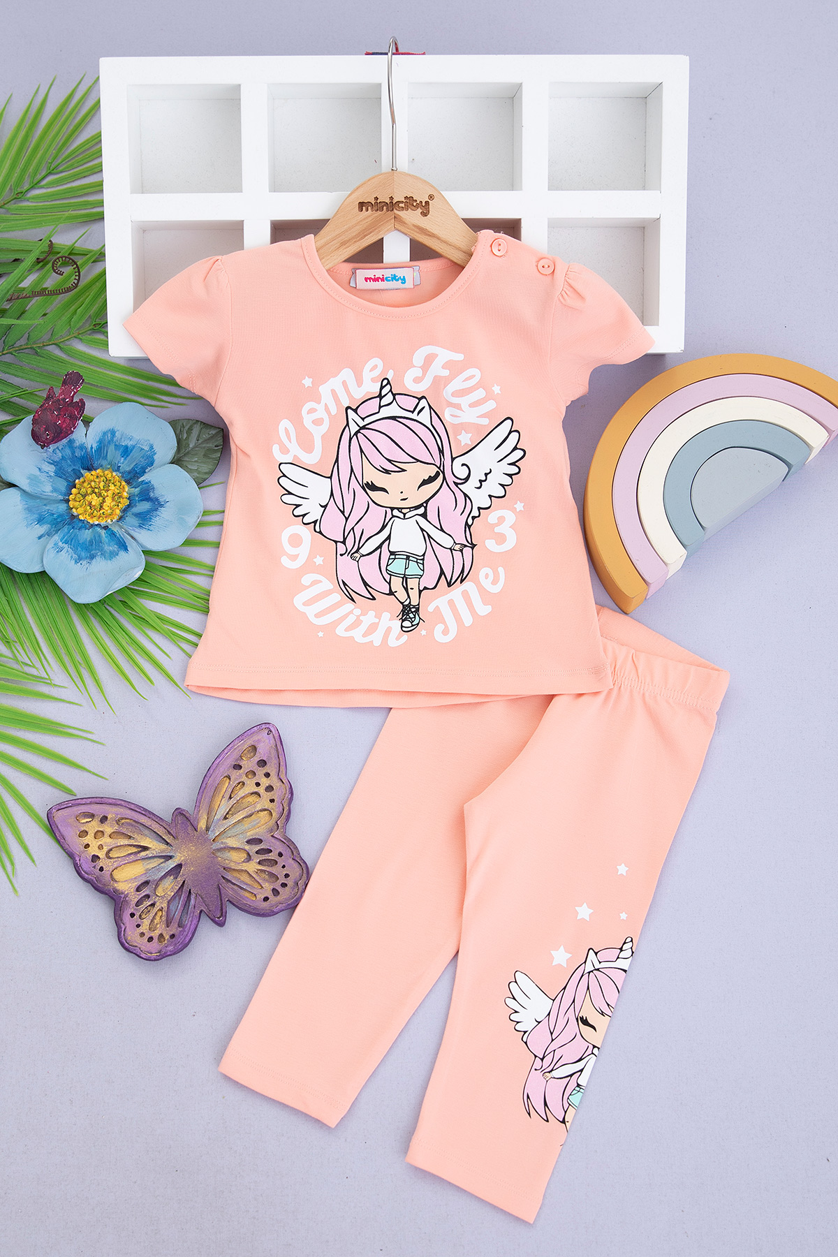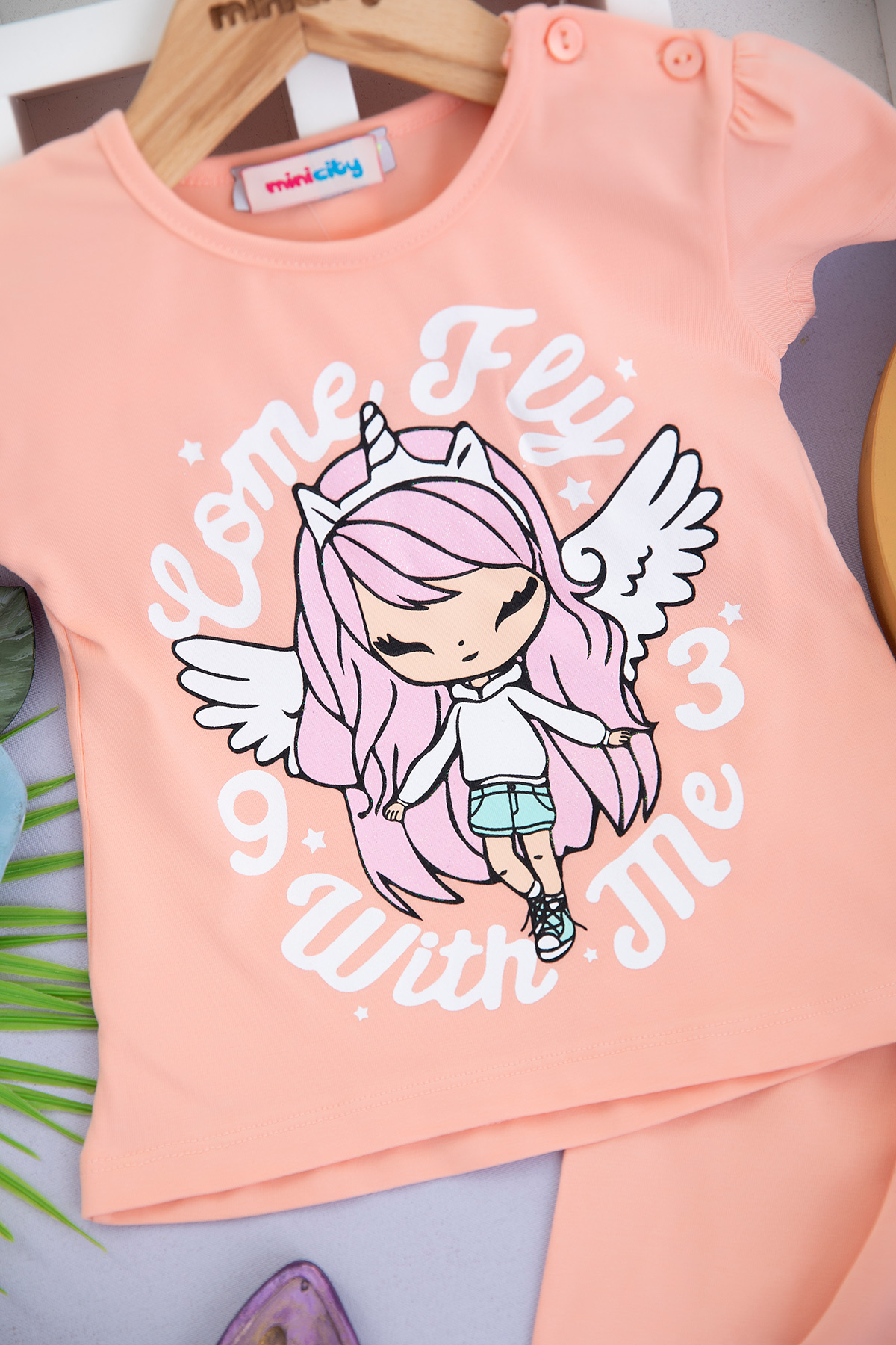 Kız Çocuk Melek Kız Baskılı Taytlı Takım - 614 (1-4 Yaş)