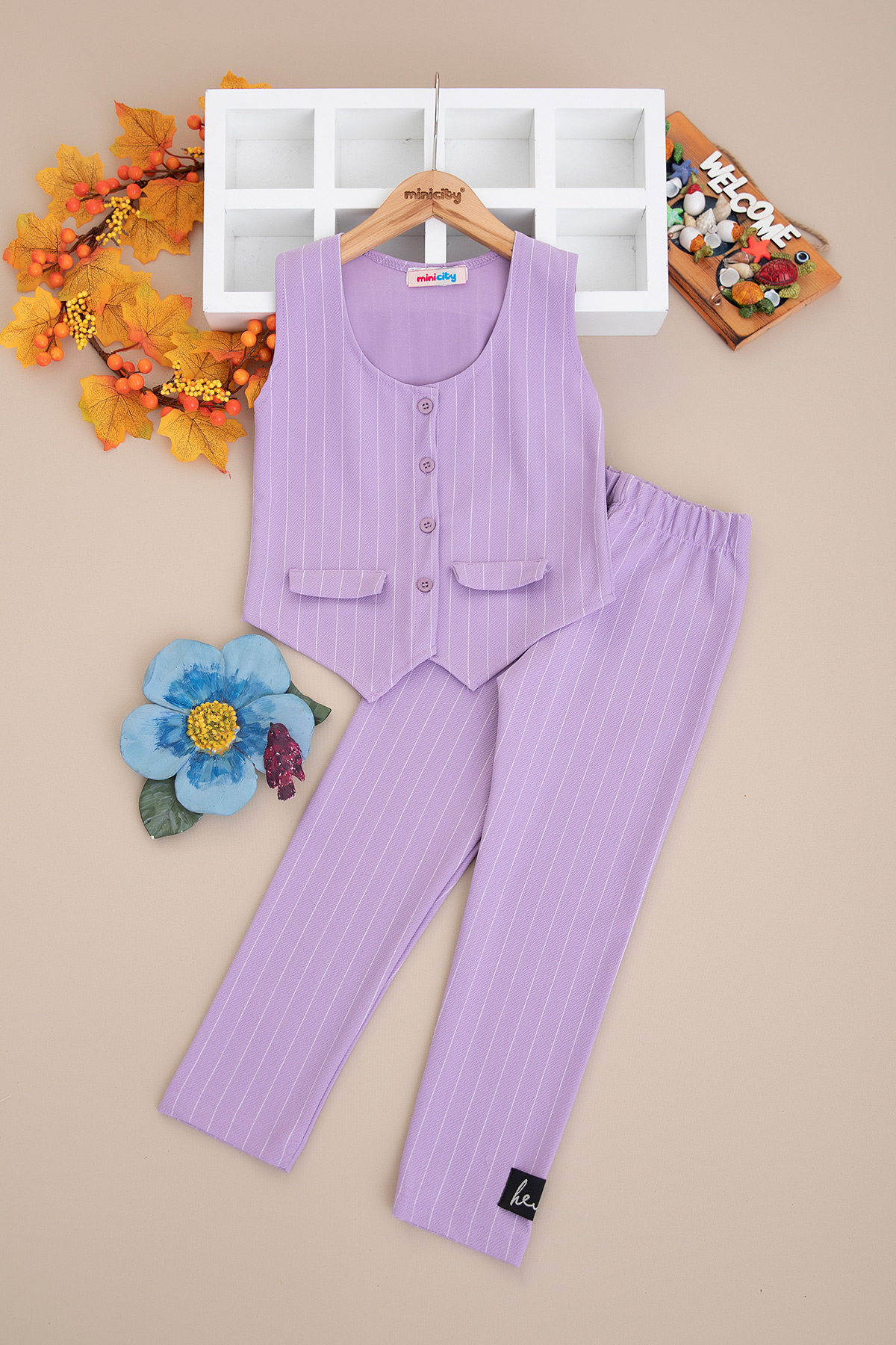Kız Çocuk Menekşe Yelekli Takım - 6634 (5-14 Yaş)
