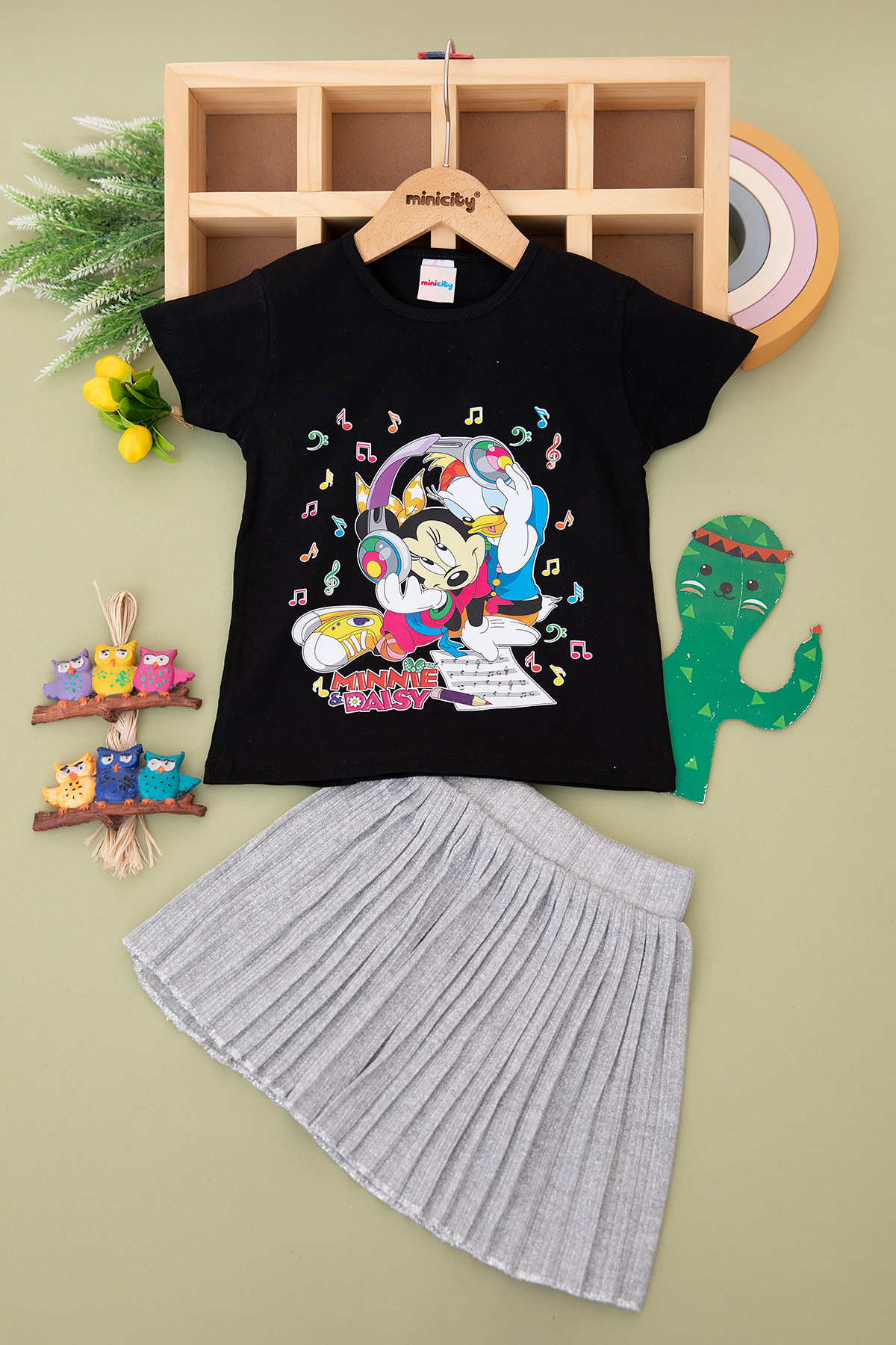 Kız Çocuk Miki Baskılı Simli Etekli Takım (2-8 Yaş)