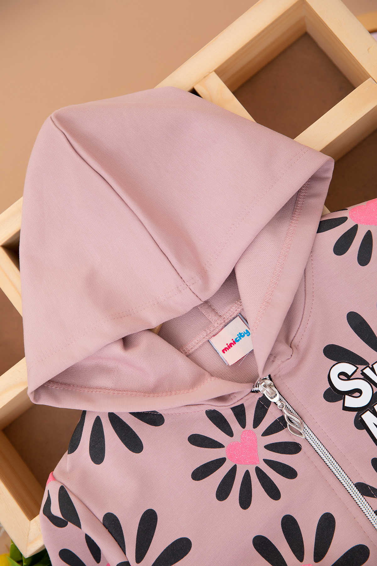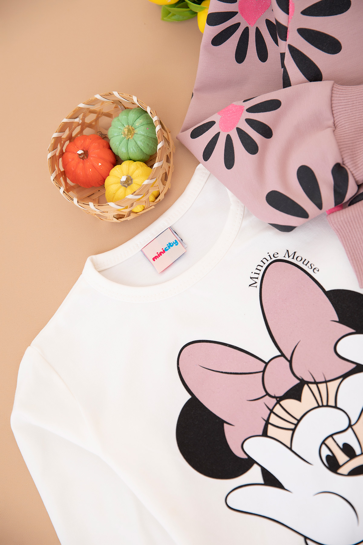 Kız Çocuk Mini Çiçekli Baskılı Deri Etekli Takım - 6003 (3-10 Yaş)