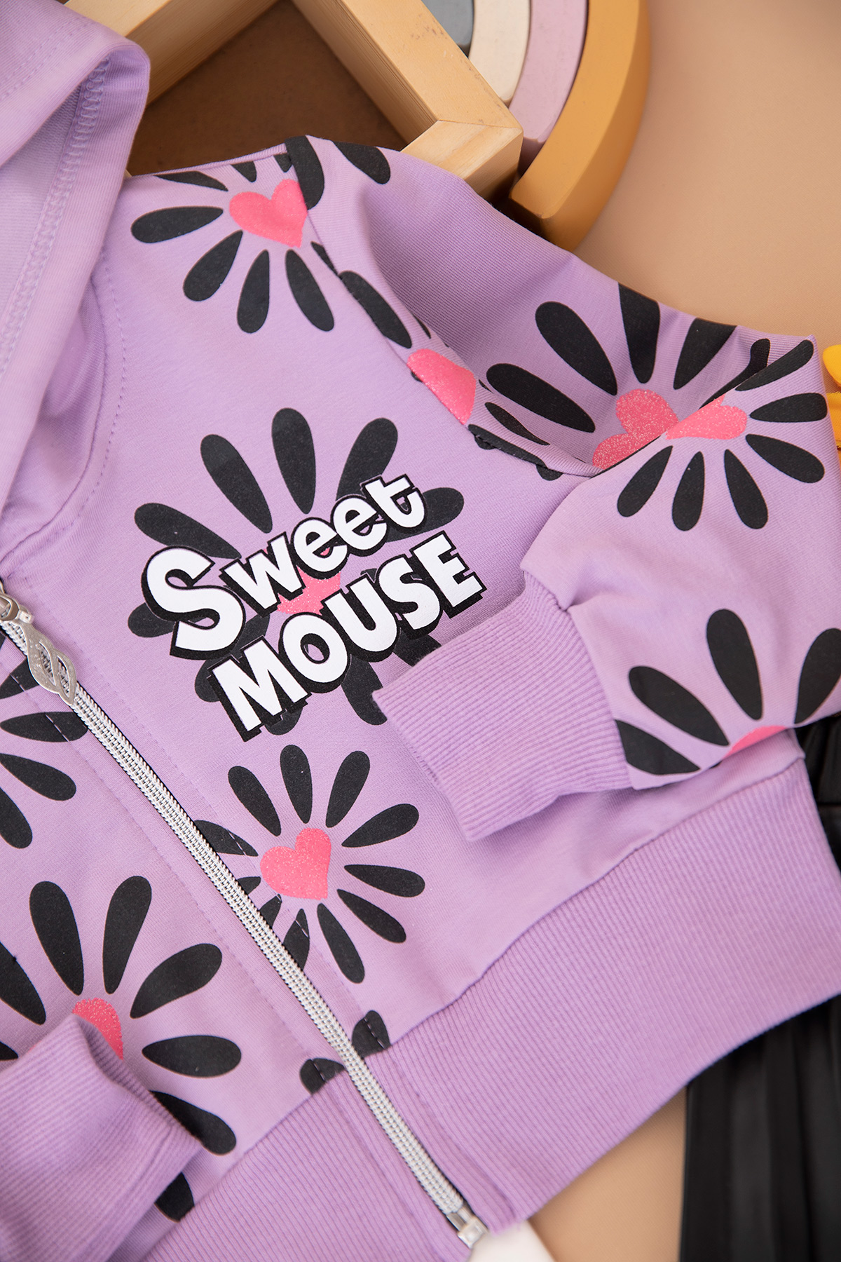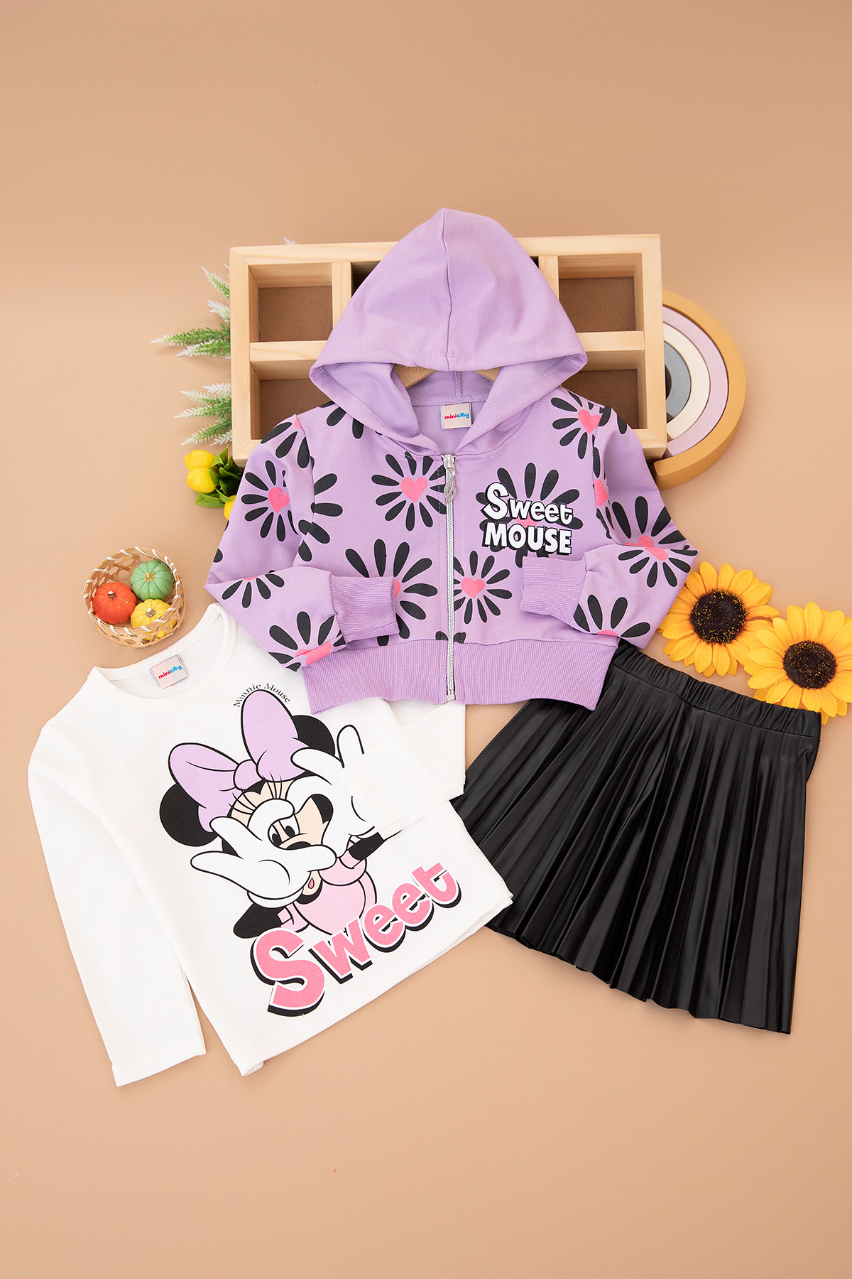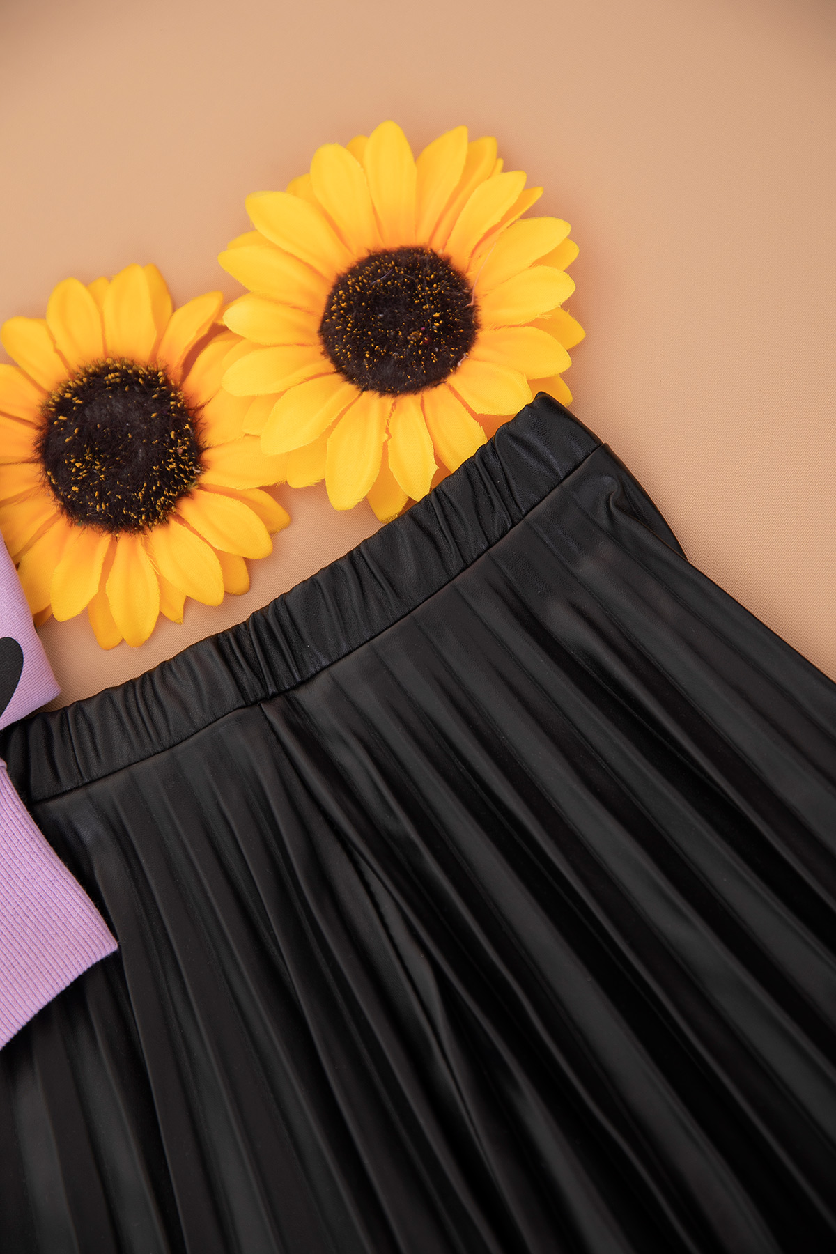 Kız Çocuk Mini Çiçekli Baskılı Deri Etekli Takım - 6003 (3-10 Yaş)