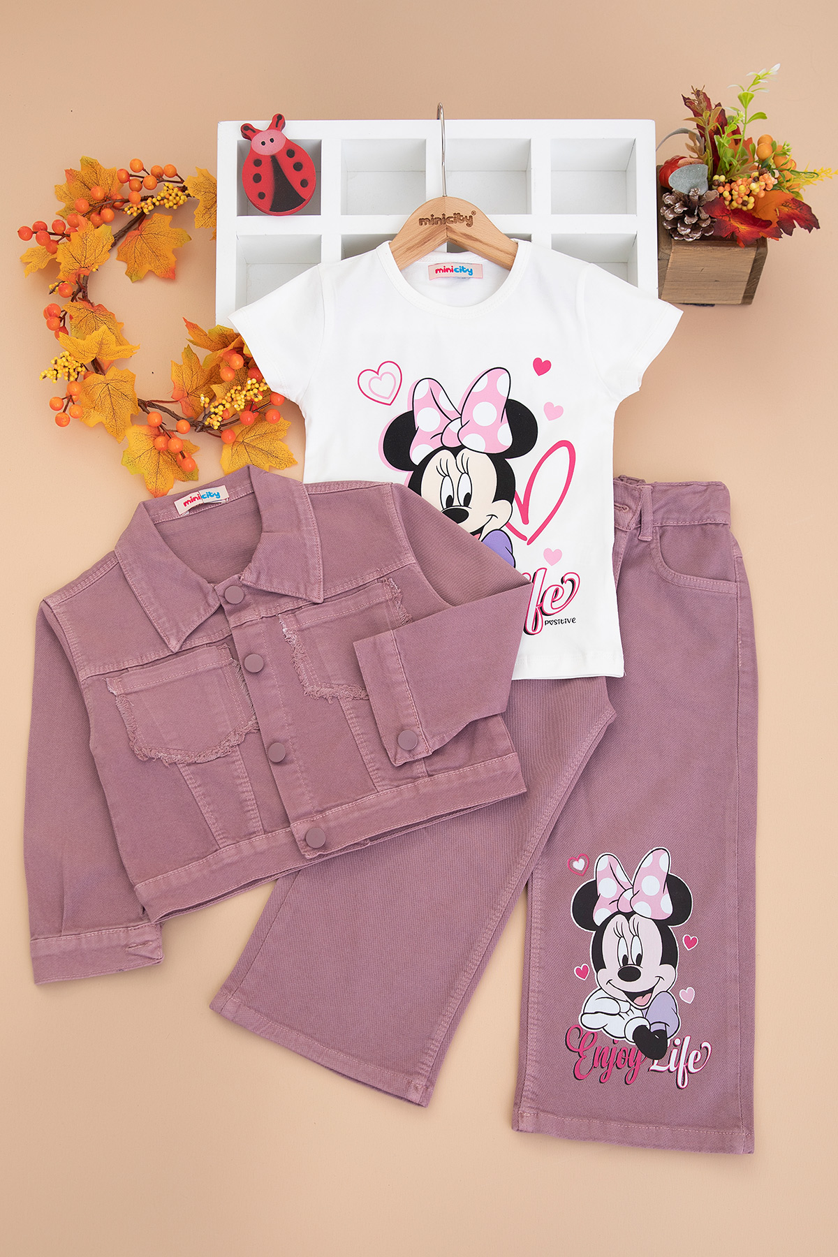 Kız Çocuk Minni Mouse Kot Ceket Takım - 6445 (3-10 Yaş)