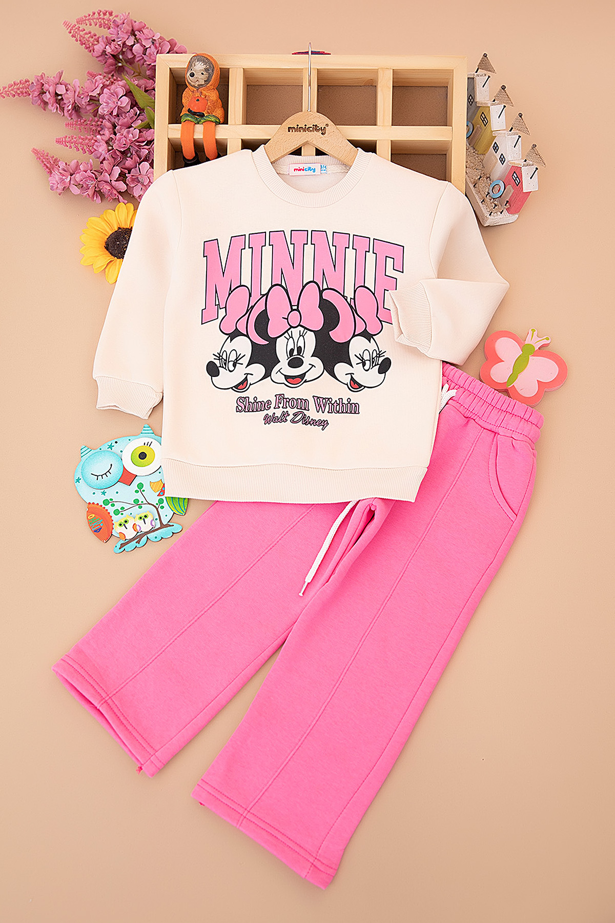 Kız Çocuk Minnie Baskılı Üçip Takım (3-10 Yaş)