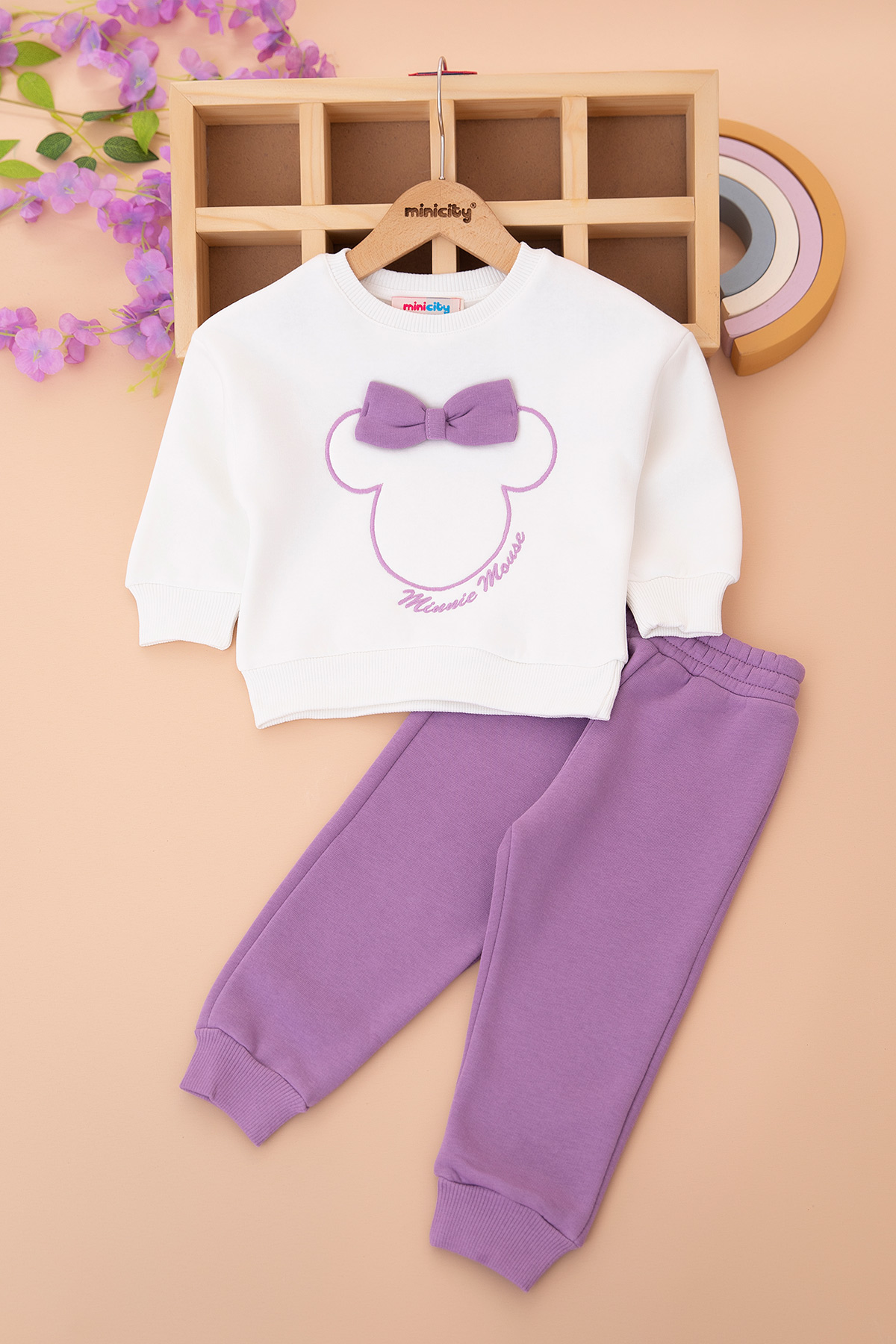 Kız Çocuk Minnie Fiyonklu Üçip Takım - 24081 (1-4 Yaş)
