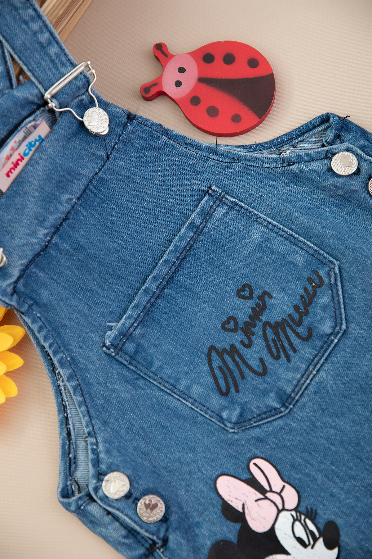 Kız Çocuk Minnie Mouse Baskılı Kot Salopet - 8902 (6-9 Yaş)