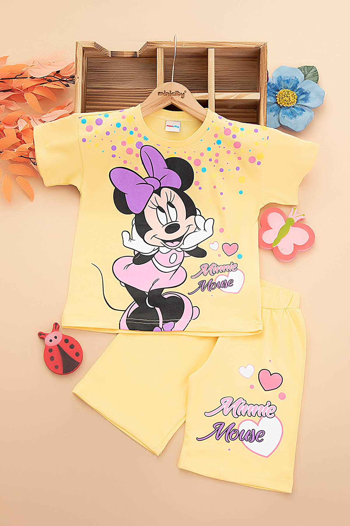 Kız Çocuk Minnie Mouse Baskılı Şortlu Takım (4-10 Yaş)