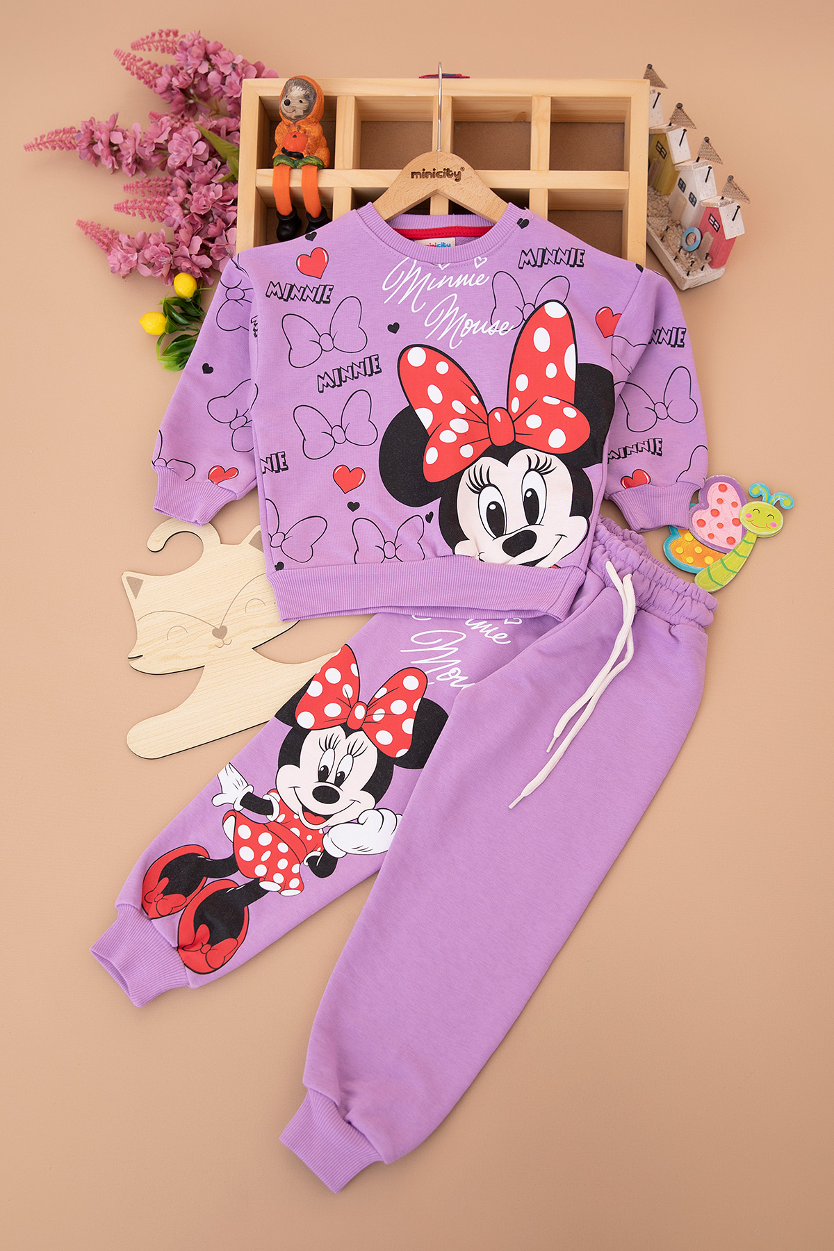Kız Çocuk Minnie Mouse Baskılı Üçip Takım (4-10 Yaş)
