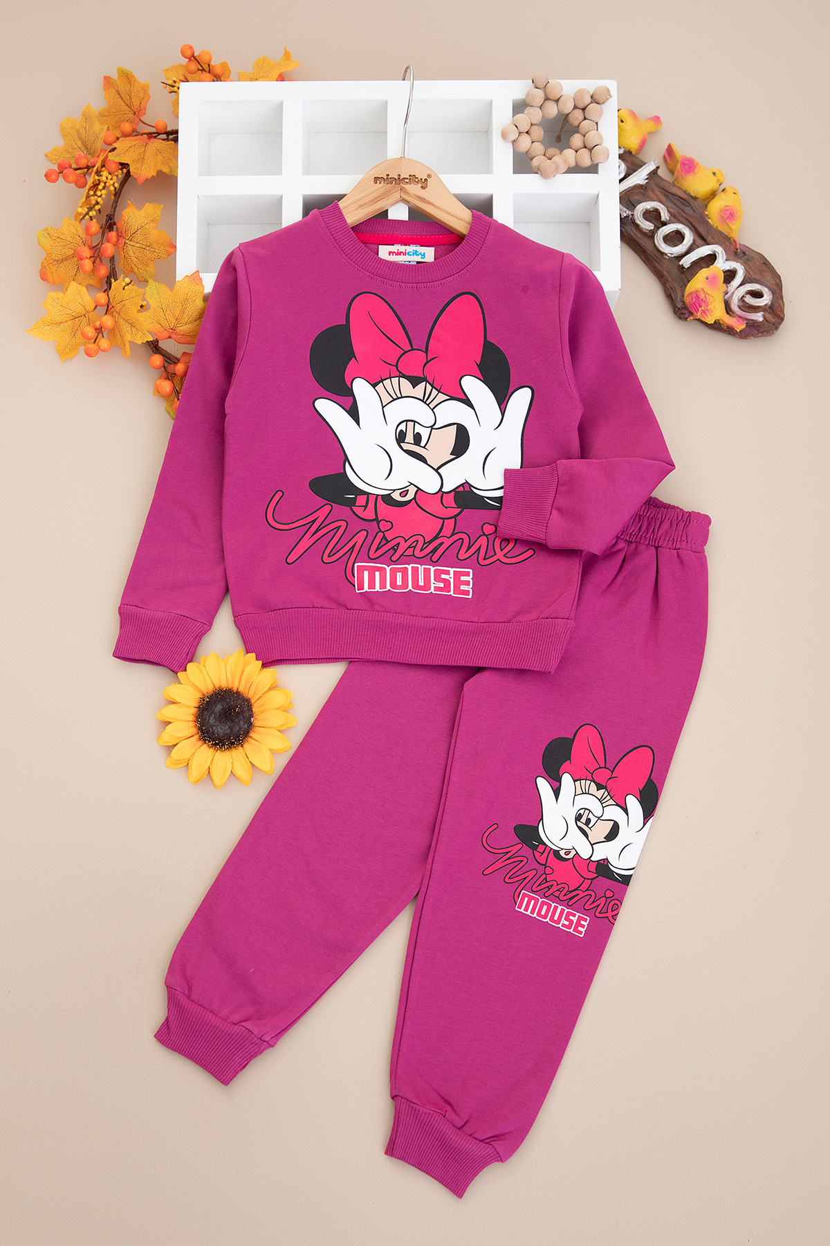Kız Çocuk Minnie Mouse Baskılı Üçip Takım - 6009 (4-10 Yaş)