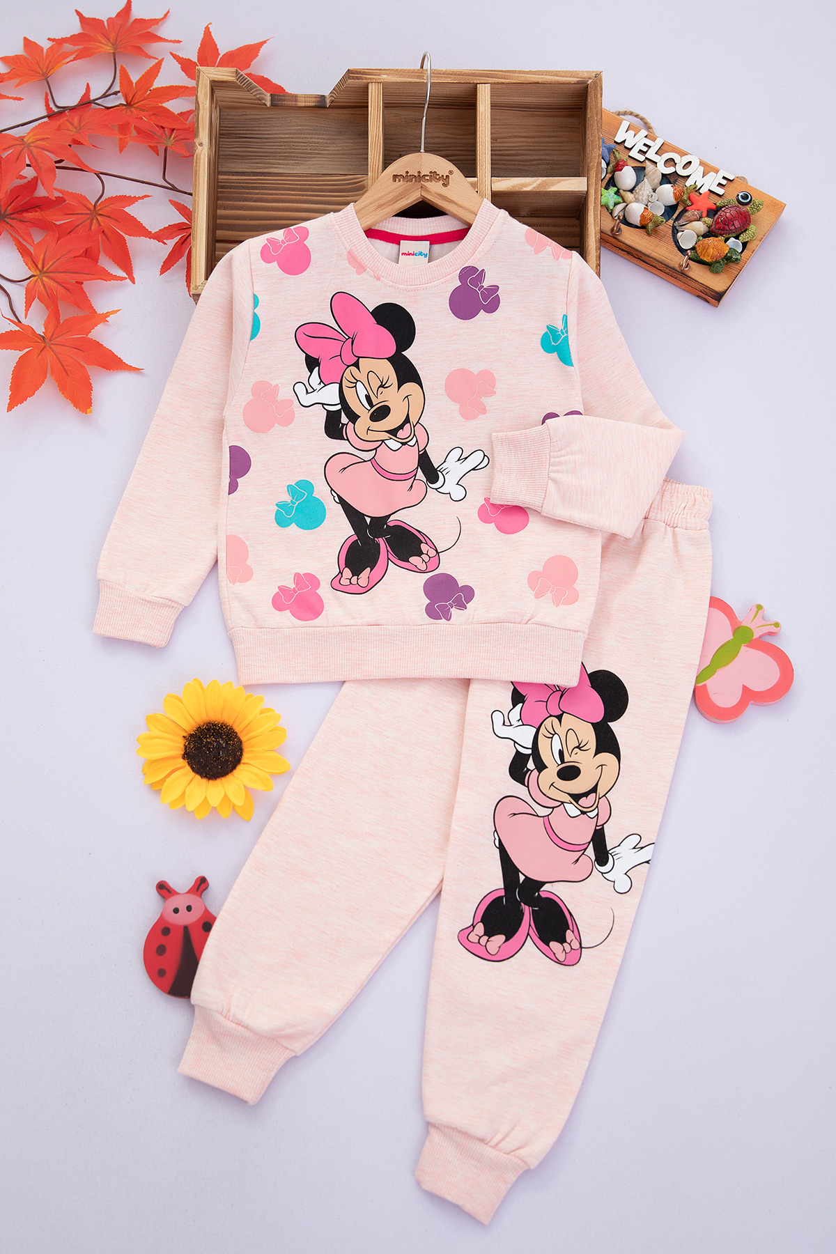 Kız Çocuk Minnie Zemin Baskılı Şardonlu Takım (4-10 Yaş)