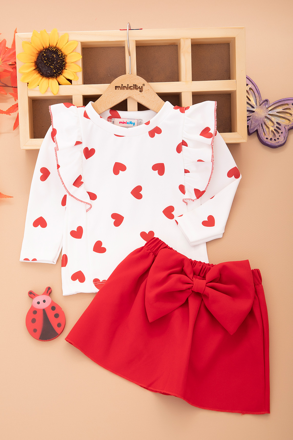 Kız Çocuk Misi Misi Kalpli Etekli Elbise - 736 (2-5 Yaş)