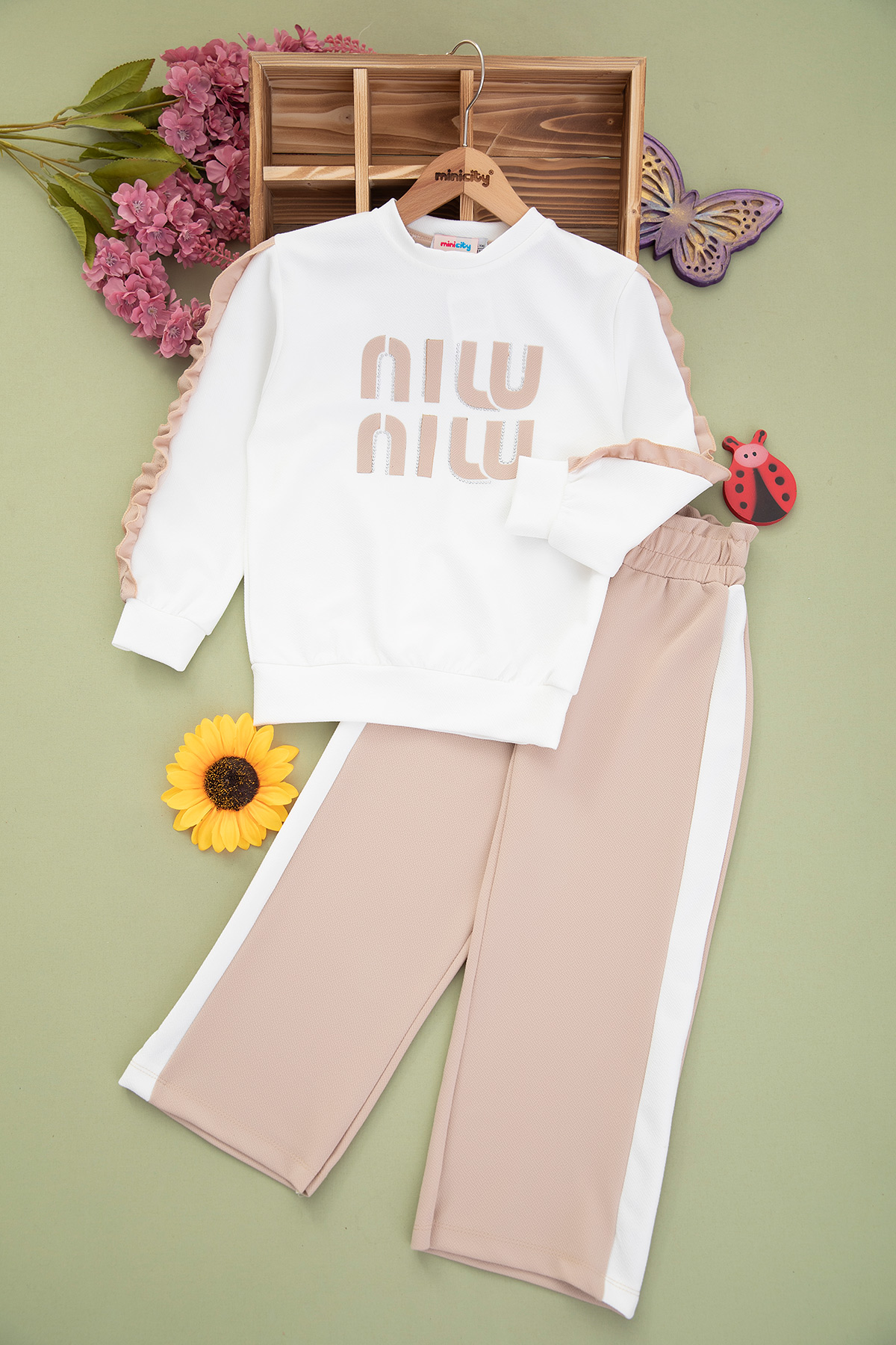 Kız Çocuk Mıu Baskılı Taşlı Takım - 1031 (6-10 Yaş)