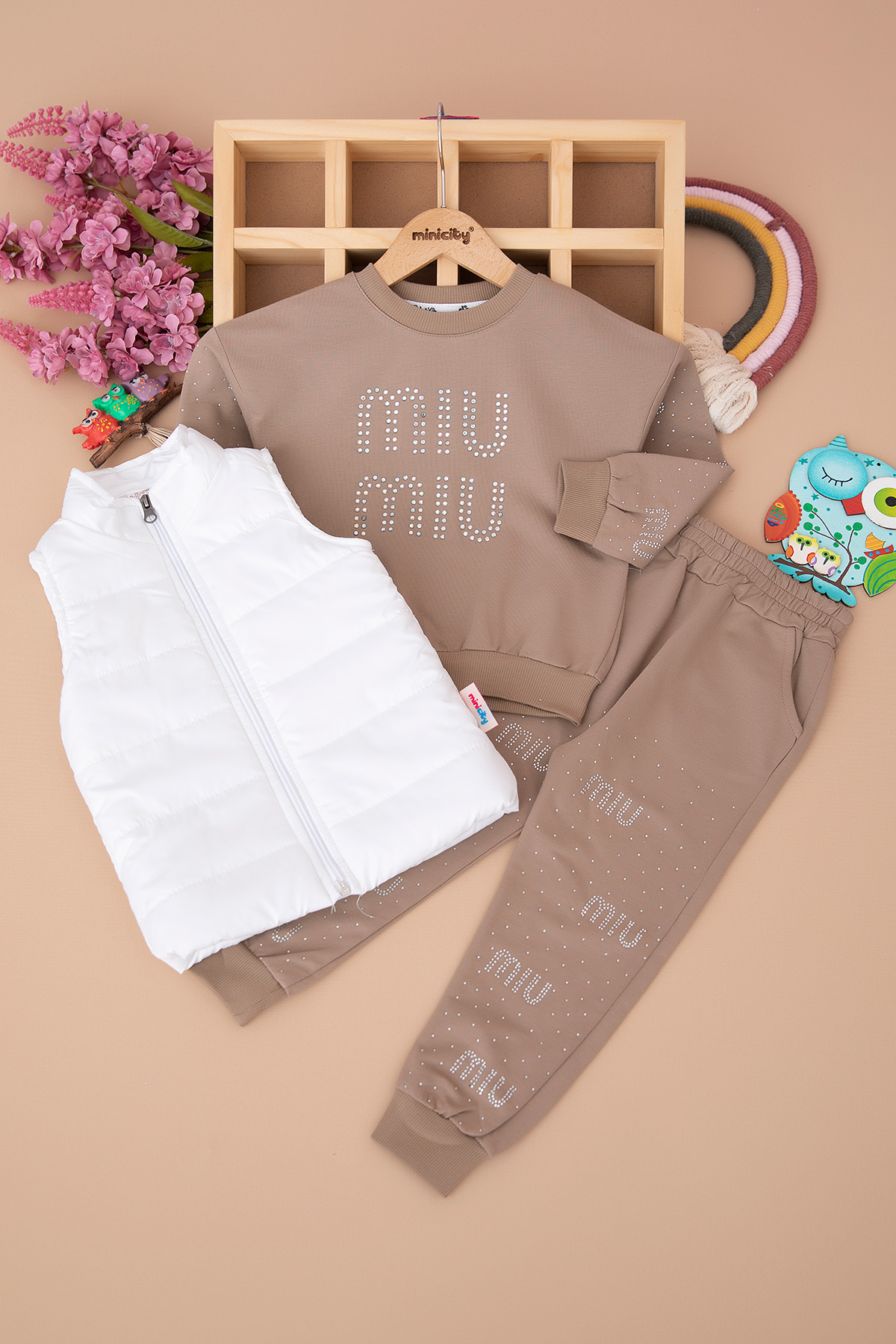 Kız Çocuk Miu Taş Baskılı Yelekli Takım - 40665 (2-5 Yaş)