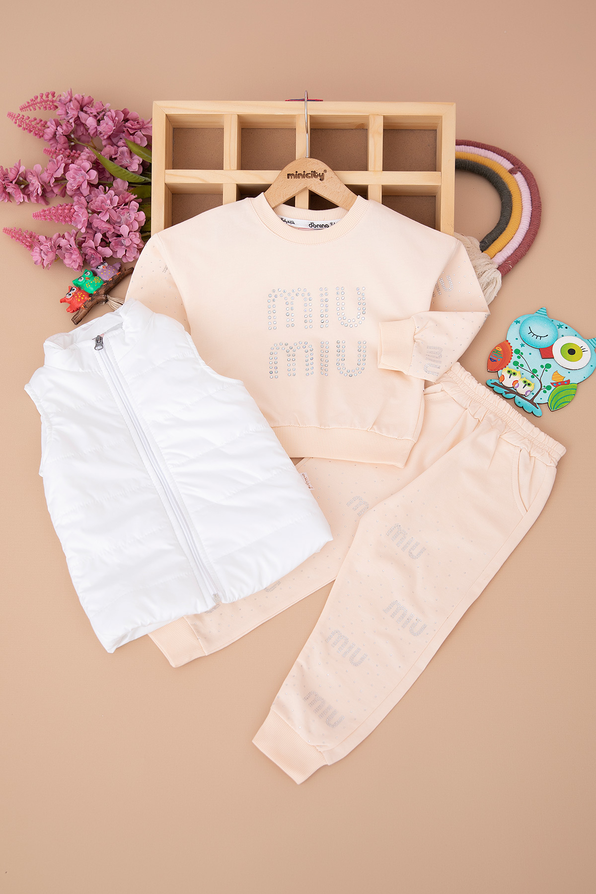 Kız Çocuk Miu Taş Baskılı Yelekli Takım - 40665 (2-5 Yaş)